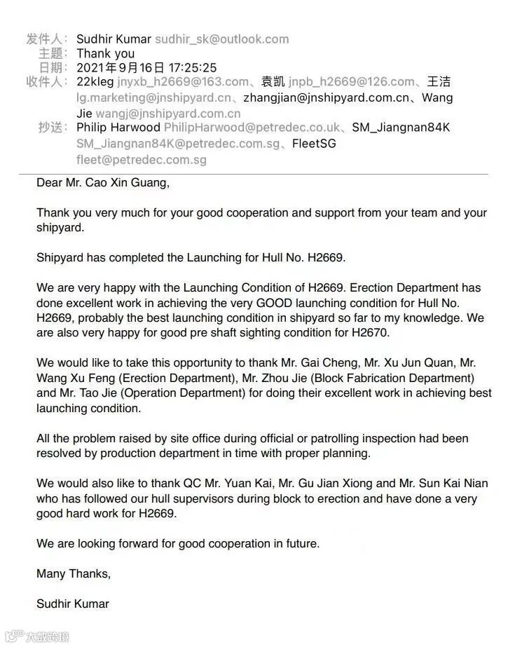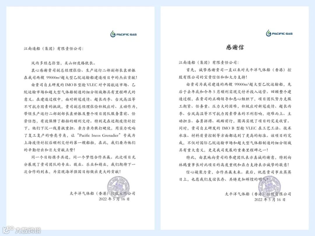 达飞集团感谢信(15000TEU双燃料集装箱船)