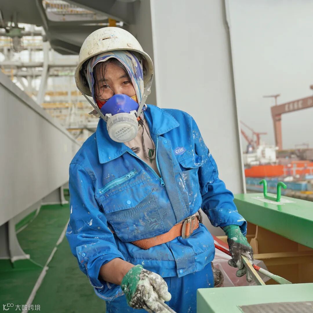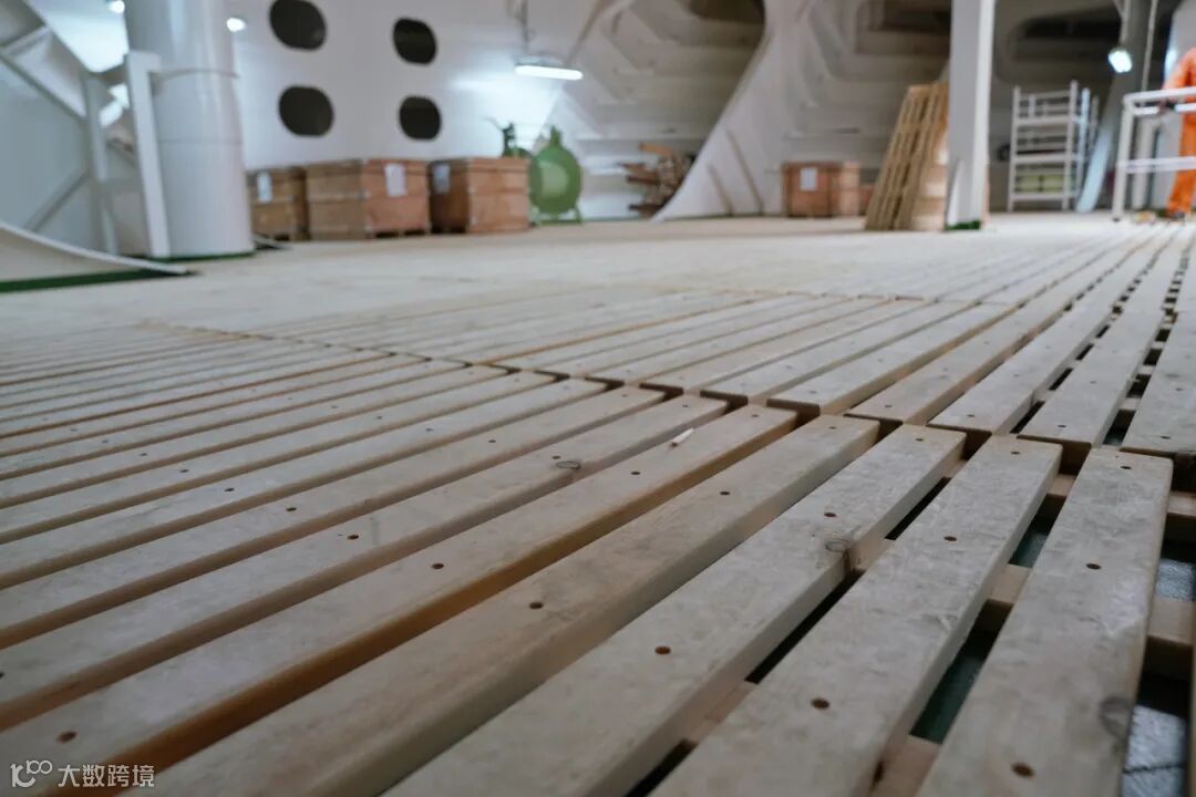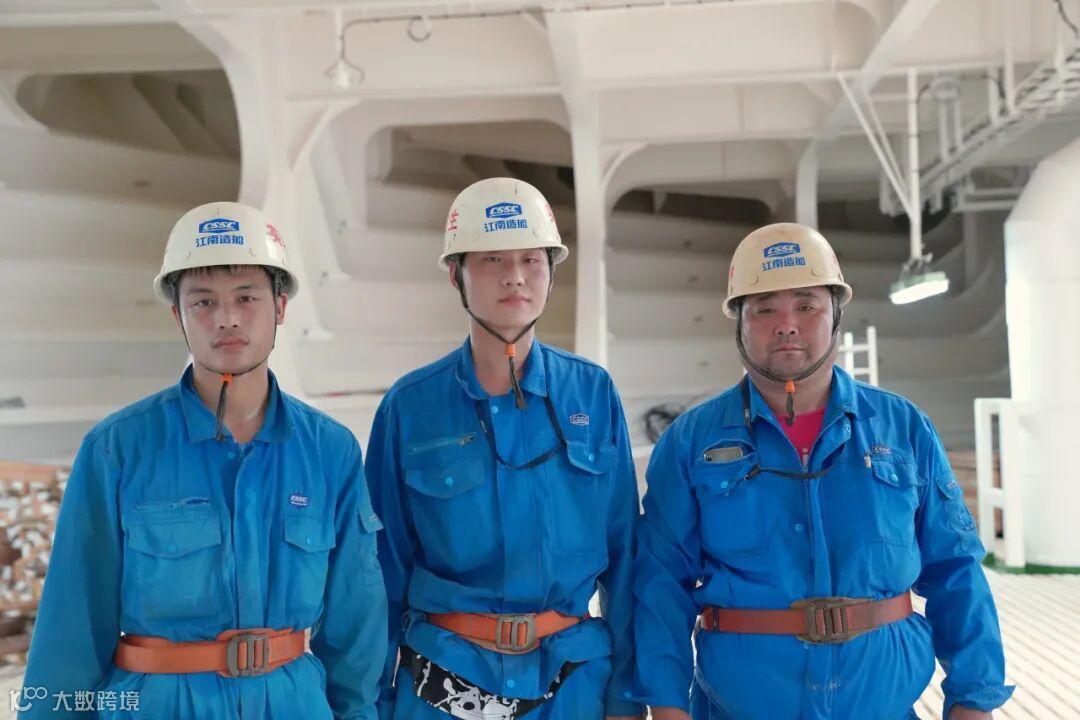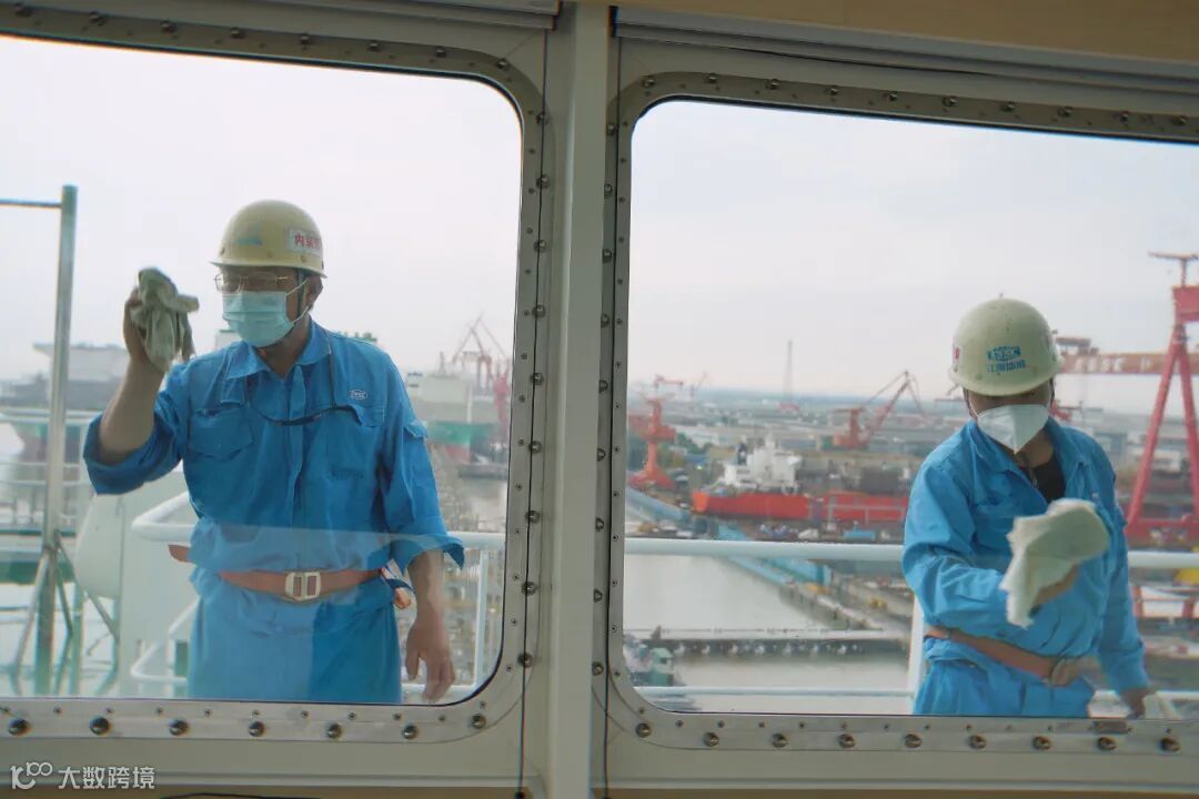 配套部机电设备作业区肖欢、范志耀在摆放到位交船备件