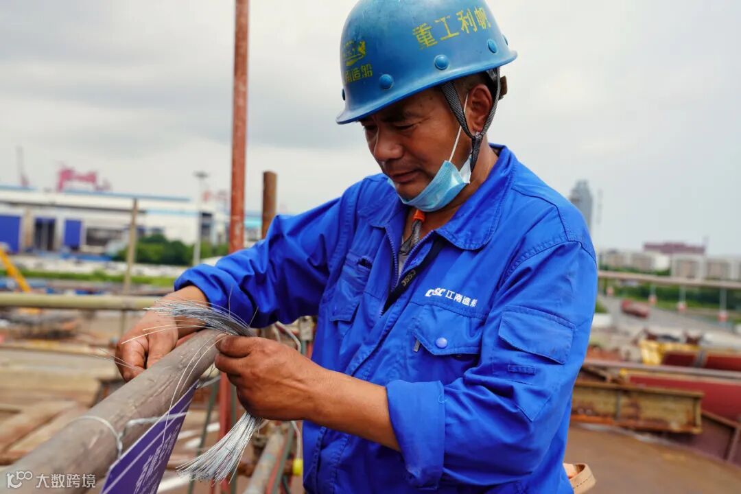 江南重工特船二部梁保山在准备进行装配工作报验前看到镜头比yeah