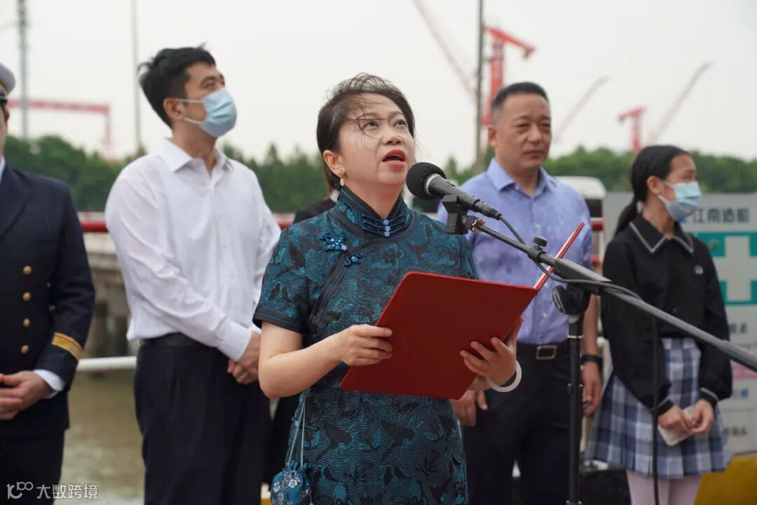 在造船行业中,为船舶命名的教母通常由船东邀请有较高社会地位的知名女士担任。本次疫情以来,江南造船职工在抗击疫情中的优秀表现感动了驻场船东代表,船东特别提议由公司在疫情防控中作出突出贡献的女员工担任本船教母,公司分管门诊部的胡燕女士被选为教母。在建造公司内选择人员担任教母,在国内外造船业内比较少见。