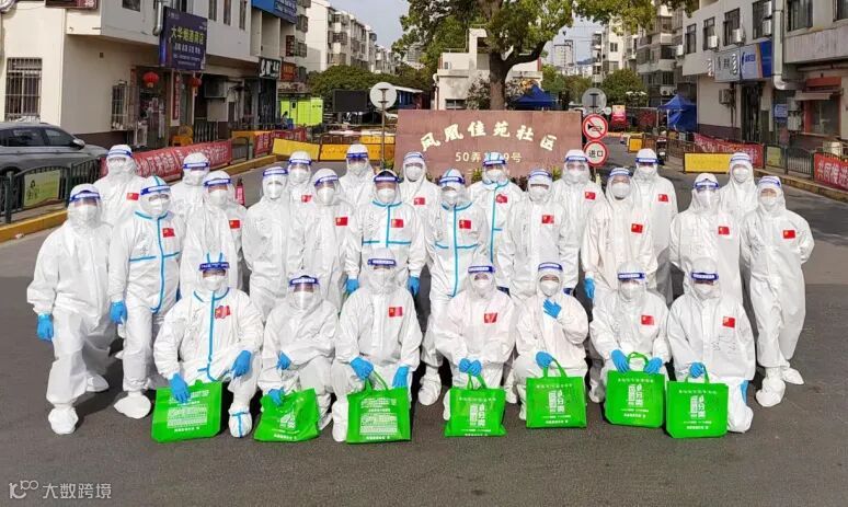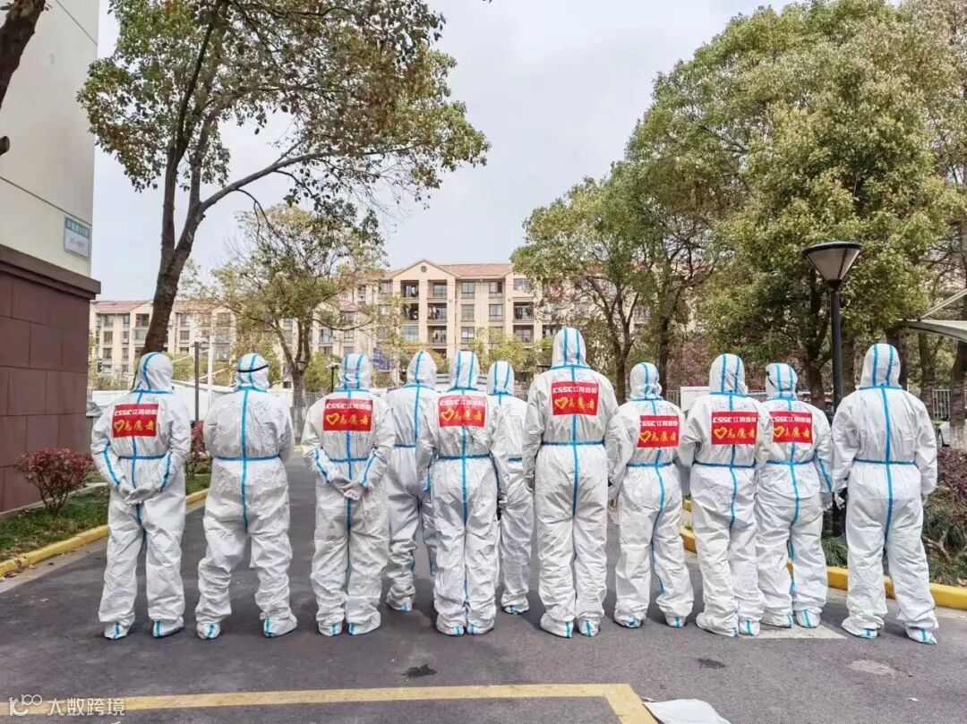 4月第一波三十度高温天气,长时间身穿防护服的江南志愿者没有喊累没有怨苦,他们相信只要不畏艰辛、团结一致、奋勇向前,就一定能打赢疫情防控阻击战,用自身行动为凤凰佳苑社区保驾护航,为党旗增辉添彩。