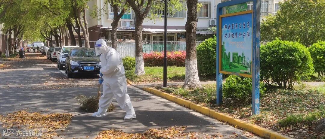 忙忙碌碌的江南“大白”身影每天都穿梭在社区中,他们看到落叶铺满了社区主干道就自发为社区清扫落叶。
