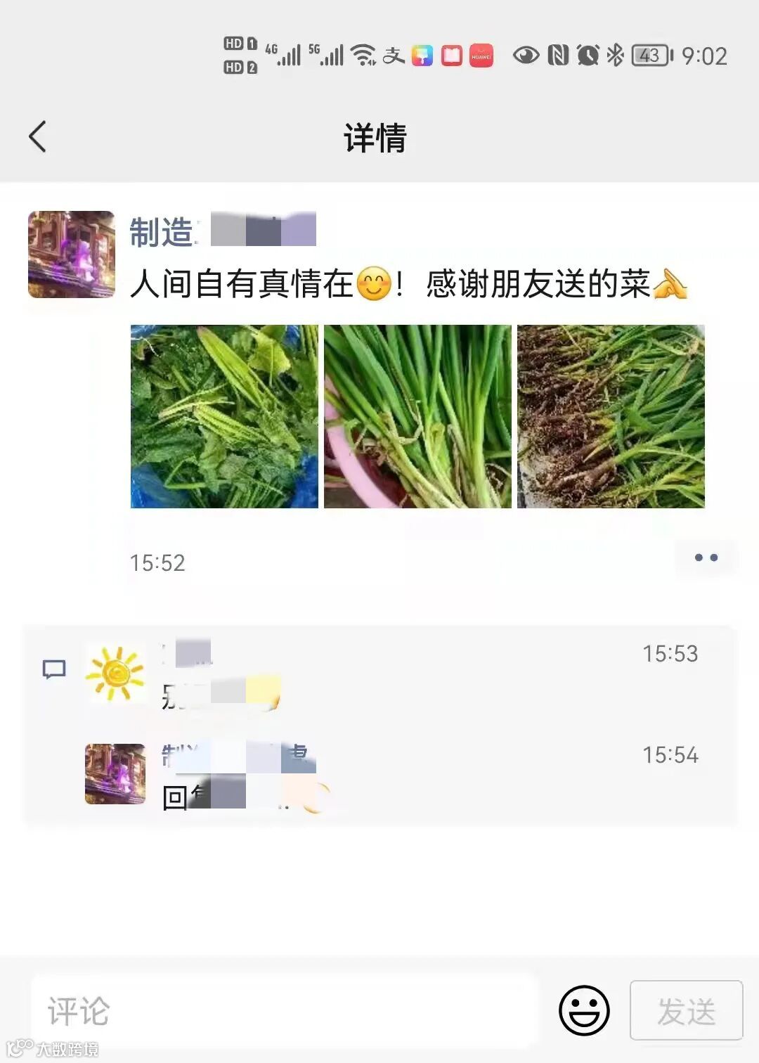 公司长明村疫情防控临时党支部志愿者、内装部员工成淑丽考虑到部分人物资缺乏,主动联系临时党支部,将自己平时种植的蔬菜无偿捐献。
