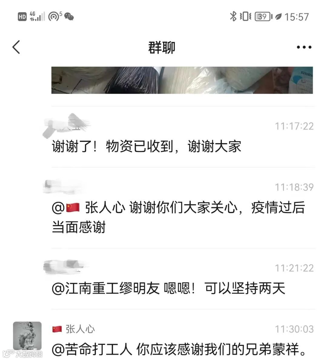 涂装二部外场作业二区组长蒙祥在公司前卫社区疫情防控临时党支部了解到有些人食材匮乏,立刻拿出自己为数不多的食物支援社区。