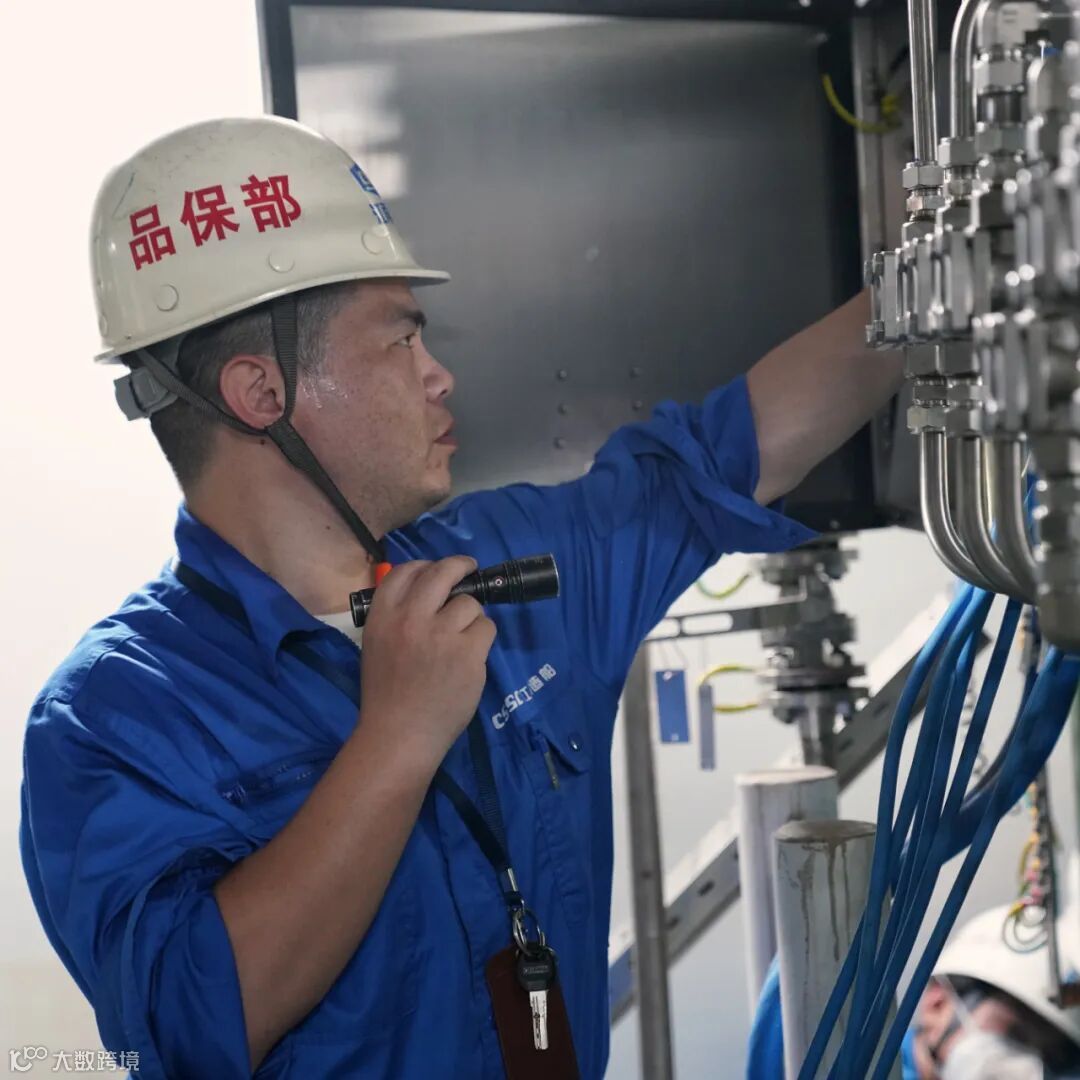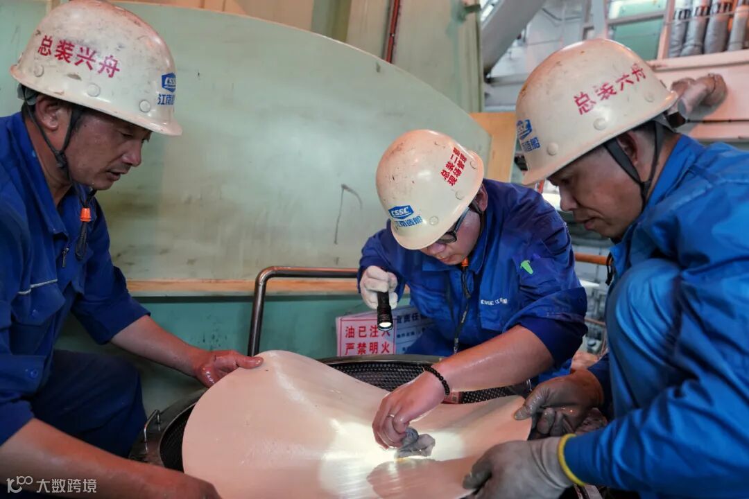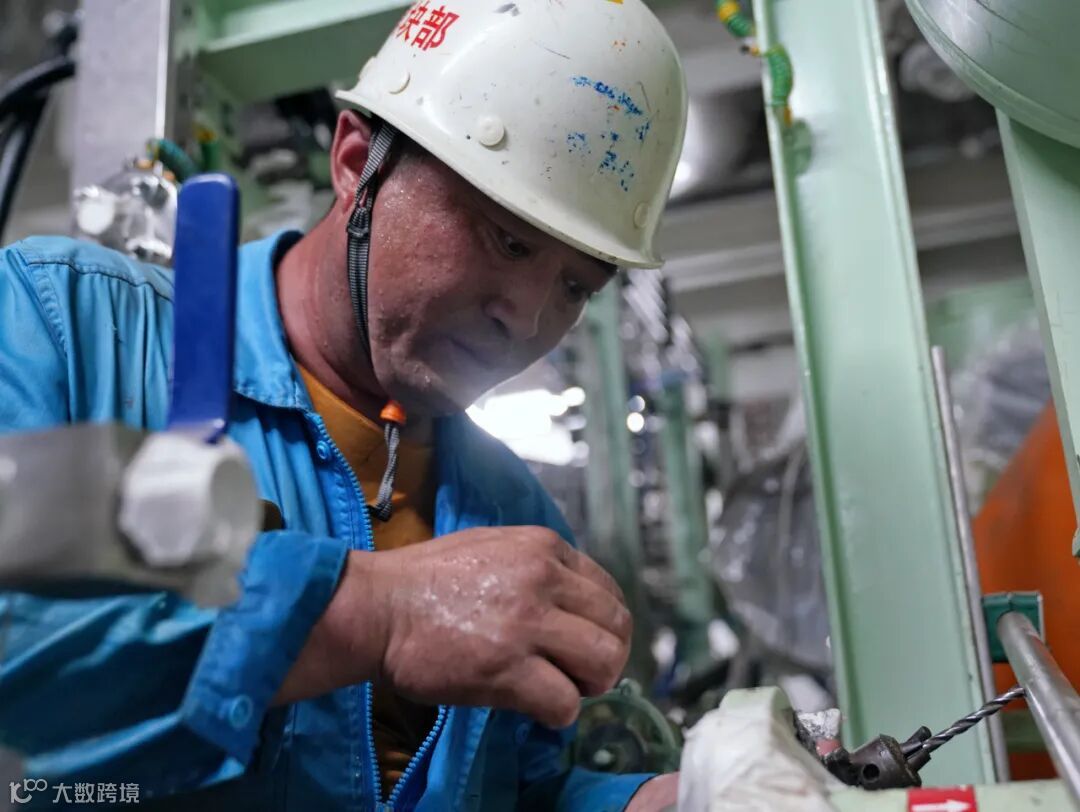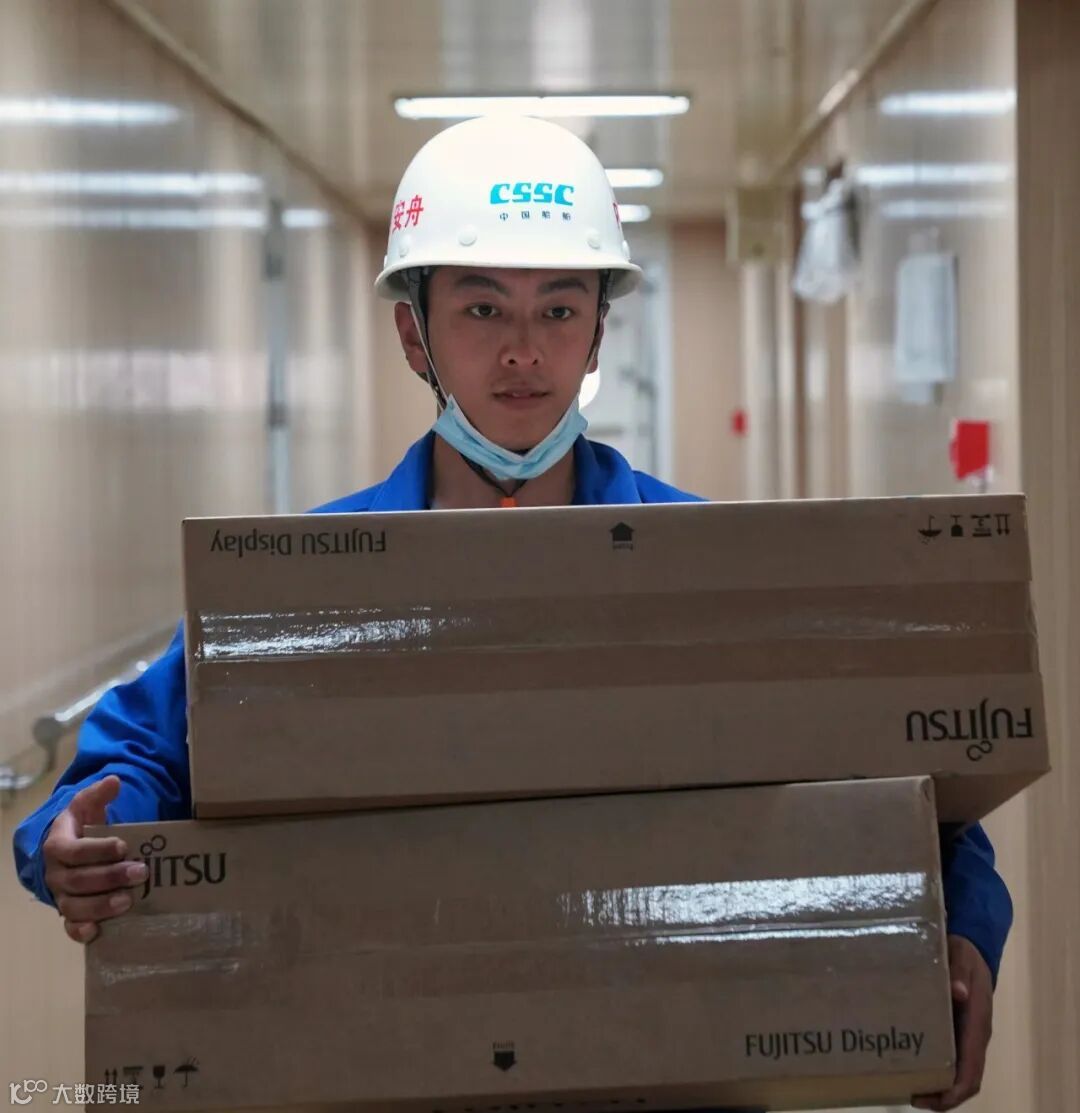 内装部上建作业区安舟公司赵齐强在进行船用设备搬运