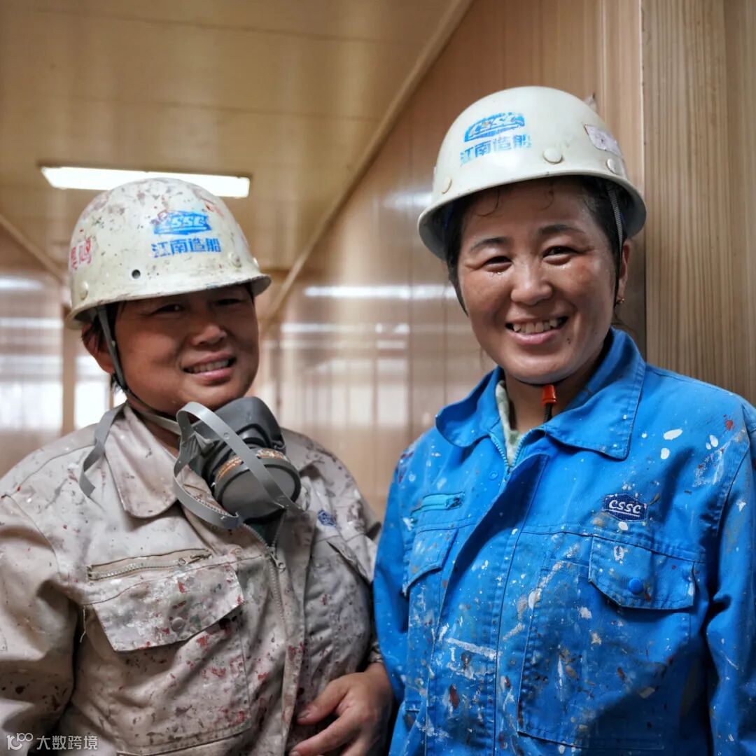 涂装二部皓源公司张红梅、李玉萍在进行室内房舱油漆涂装