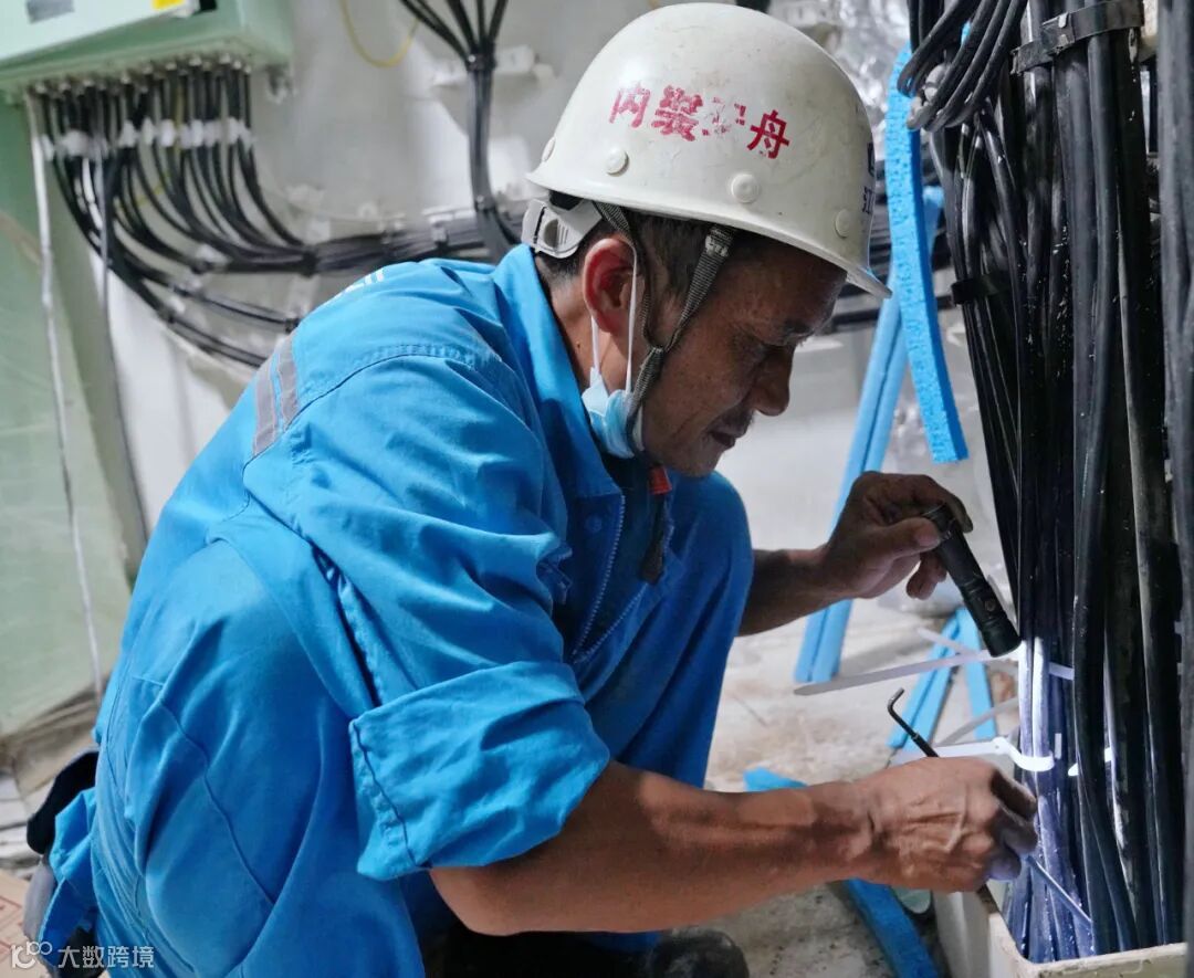 总装部电一作业区李森在进行燃料舱FGHR间(燃气处理间)的电缆敷设