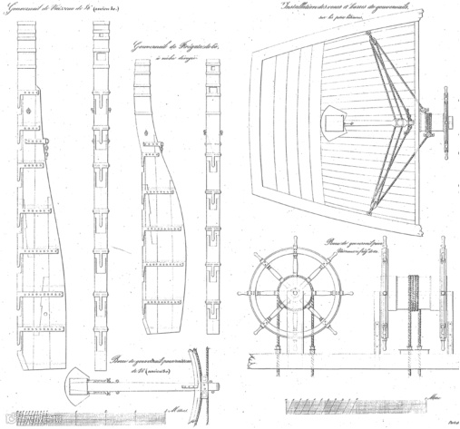 但笔者翻阅了江南造船集团档案馆目前保存的资料,没有查到相关蒸汽驱动机械的信息。此外,如果该舰是以日意格拿来的法国海军阿莫列克(Armorique)型舰的图纸建造的话,阿莫列克型舰是一艘19世纪50年代完工的木造军舰,而且是在传统风帆战舰的基础上接长改装成蒸汽动力的,再则19世纪五十年代蒸汽动力机械尚未开始普及,因此,推断阿莫列克型舰未必配置蒸汽动力机械;再则当时燃料煤的补给站并不多,蒸汽机主要还是只能被用作辅助动力。根据上述判断,在“海安”号的复原时不考虑配置蒸汽动力甲板机械。