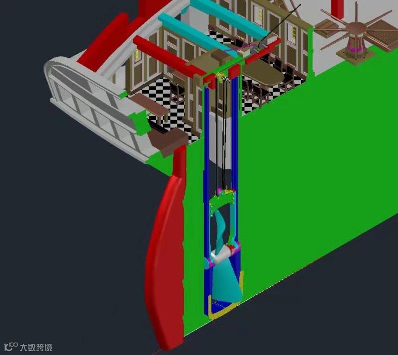 图4-14“海安”号艉部三维电子模型的纵中剖面