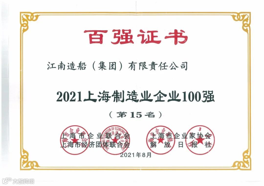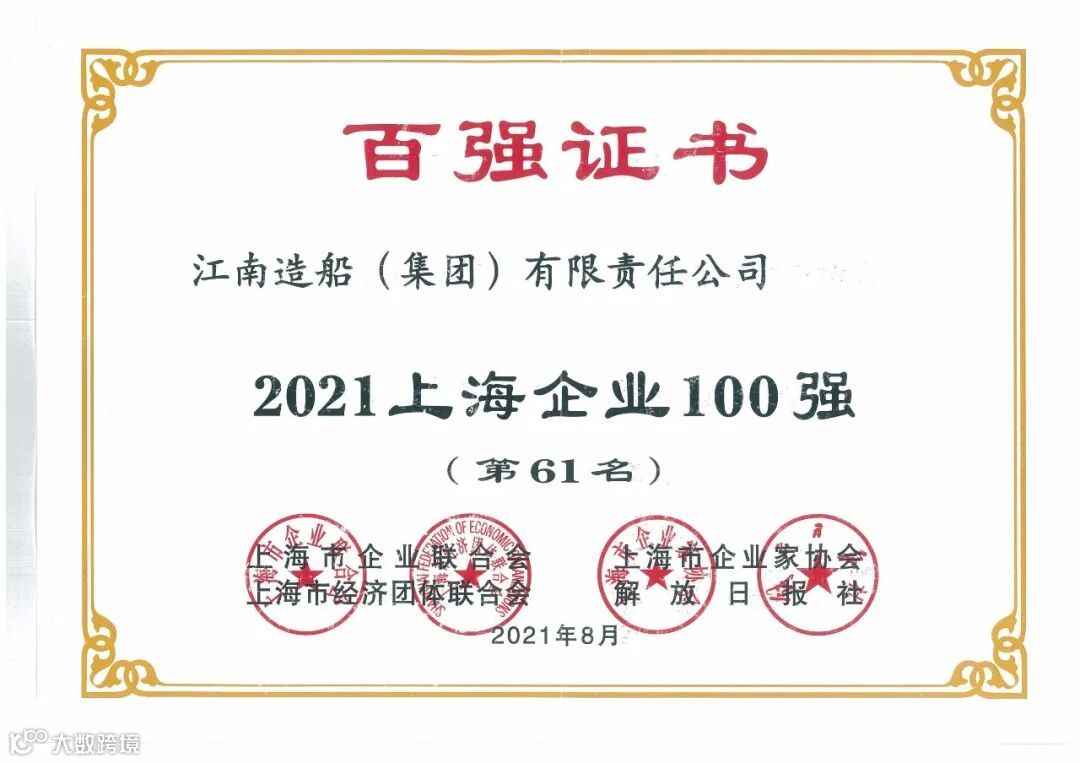 8月26日,上海市企业联合会、上海市企业家协会、上海市经济团体联合会和解放日报社联合召开了2021年上海百强企业发布会,会上公布了“2021上海企业100强”等8项榜单,中国船舶集团旗下江南造船进入了“2021上海企业100强”、“2021上海制造业企业100强”、“2021上海新兴产业企业100强”三个榜单。