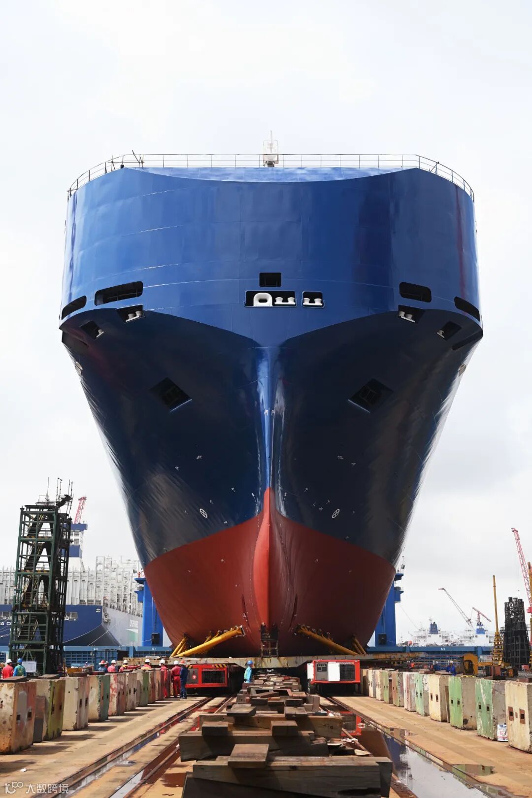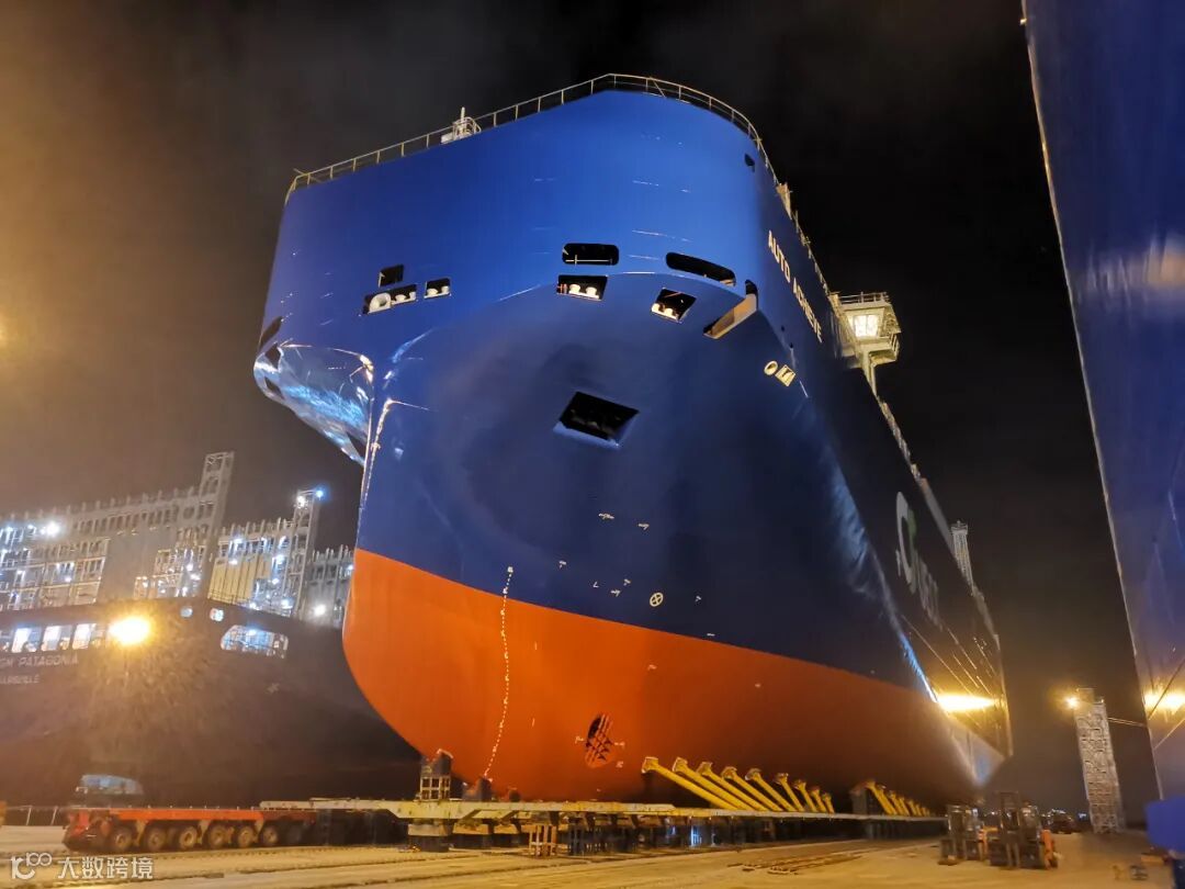 8月12日上午9:18,随着518轴线模块运输装置的轰鸣作业声,中国船舶旗下江南造船为UECC公司建造的3600车双燃料混合动力汽车运输船(PCTC)系列第二艘H2664被缓缓顶升,开始了滚装下水作业。经过162分钟后,上驳工作顺利完成,较首船缩短近半小时。据悉,该船下水完整性进一步提升,上建结构全部交验结束,上建外板油漆全部完成。