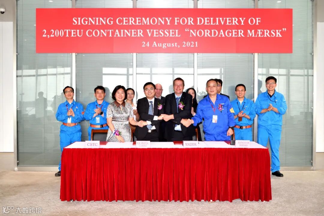 8月24日,中国船舶集团旗下江南造船为工银租赁建造的第3艘2200TEU支线箱船H2642船命名交付,该船被命名为“NORDAGER MAERSK”,将在交付后加入马士基航运船队。工银租赁航运金融事业部、上海营销中心负责人杨伟聪,贸易公司船海业务二部总经理张大蕾,江南造船副总经理陈卫平等领导和嘉宾出席仪式。江南造船市场营销部部长助理王洁女士为新船命名。