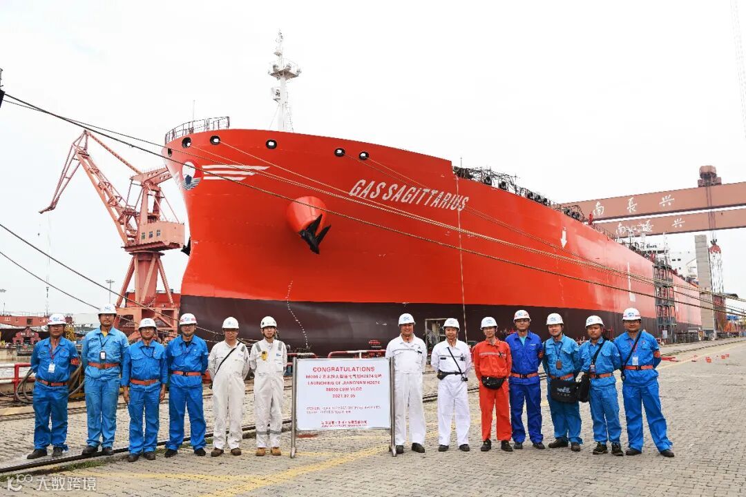 7月2日,系列首制15000TEU双燃料超大型集装箱船和86000立方米双燃料超大型液化气船,2船同日实现主机动车