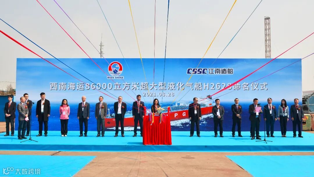 3月28日,中国船舶集团旗下江南造船为西南海运有限公司建造的全球首艘新造86000立方米LPG双燃料超大型液化气船(VLGC)“GAS VENUS”举行命名仪式。该船建造完成标志着江南造船继续领跑全球液化气船市场,进一步夯实了江南造船作为全球液化气船建造中心的地位。