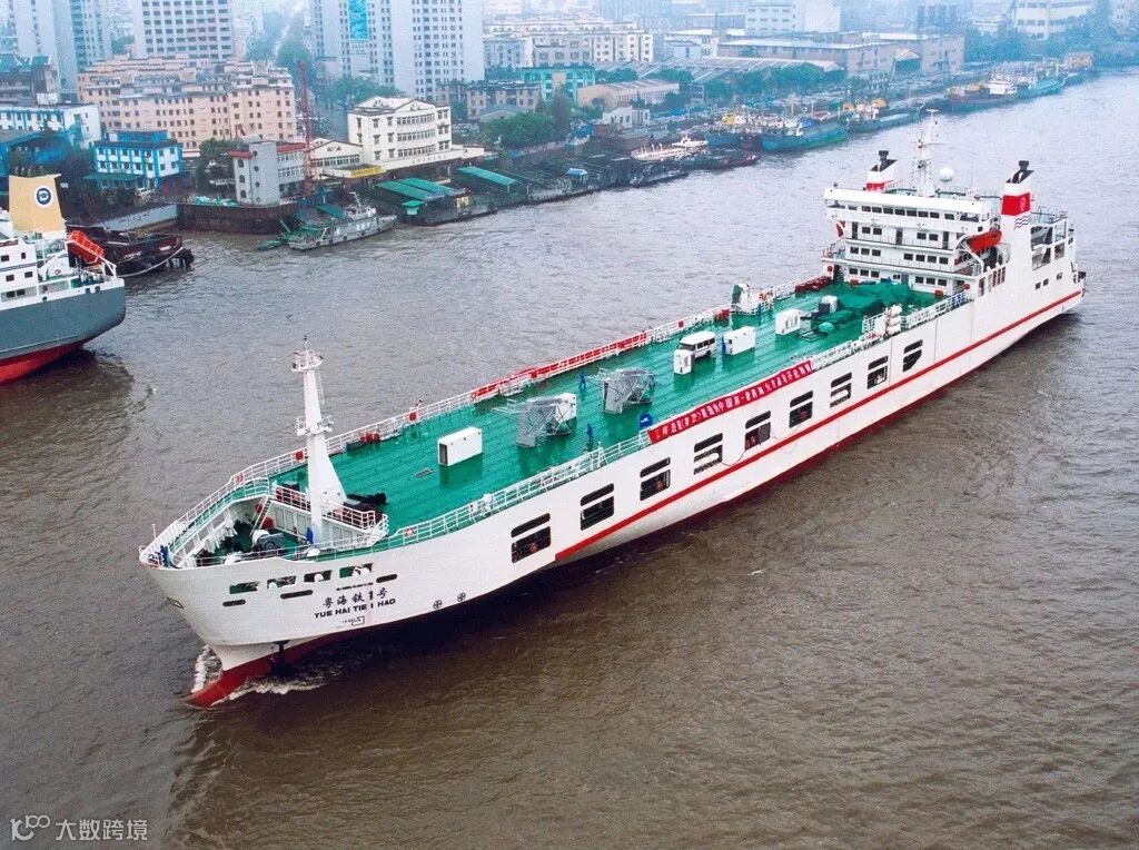 从视频来看,搭载2组复兴号动车组过海的是“粤海铁1号”“粤海铁2号”火车渡船。这2艘船均由中国船舶集团有限公司旗下第七〇八研究所设计、江南造船(集团)有限责任公司建造,其中,“粤海铁1号”是我国第一艘自行设计、自行建造的跨海火车渡船,该船于2003年1月投入运营,结束了海南岛与外省不通火车的历史。