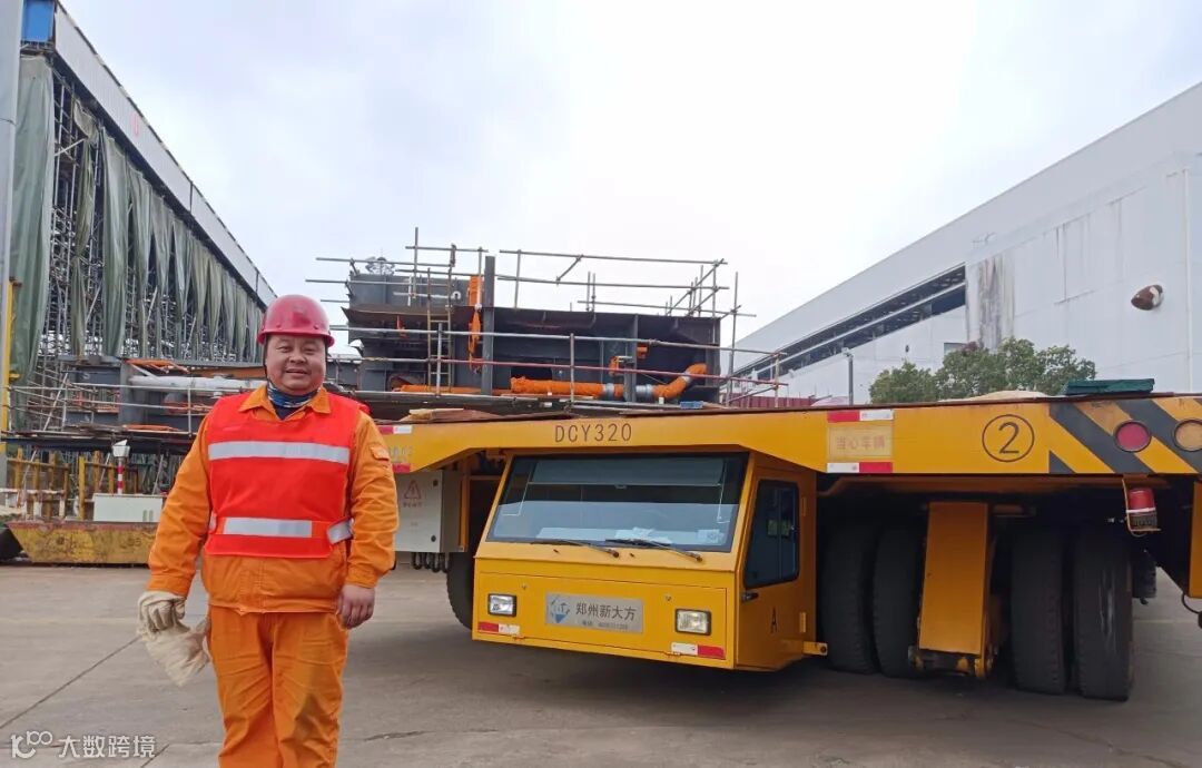 公司费鞋第一名,平均1个月至1.5个月就要换掉一双鞋,长期霸占微信运动第一名,最高记录一天行走5.5万步,平均每天4万步左右。作为一名领车员,他用自己的脚步丈量公司的每一条马路、每一块生产区域,对公司的每一块场地都了如指掌。他还会根据分段的形状和重量将它们安排的明明白白的,这决定着驳运的质量和安全性。