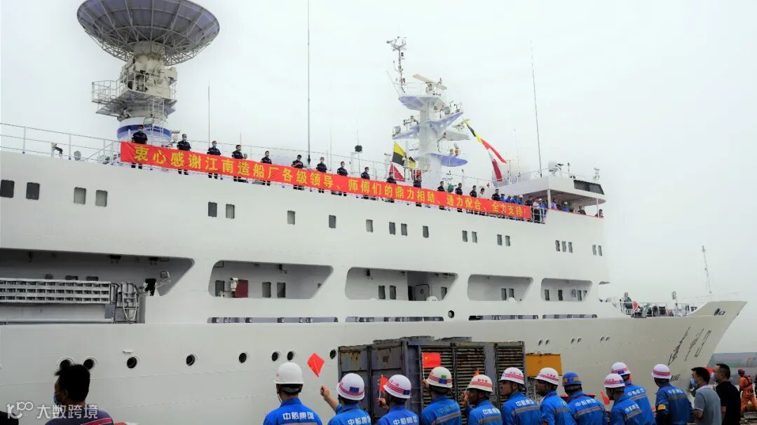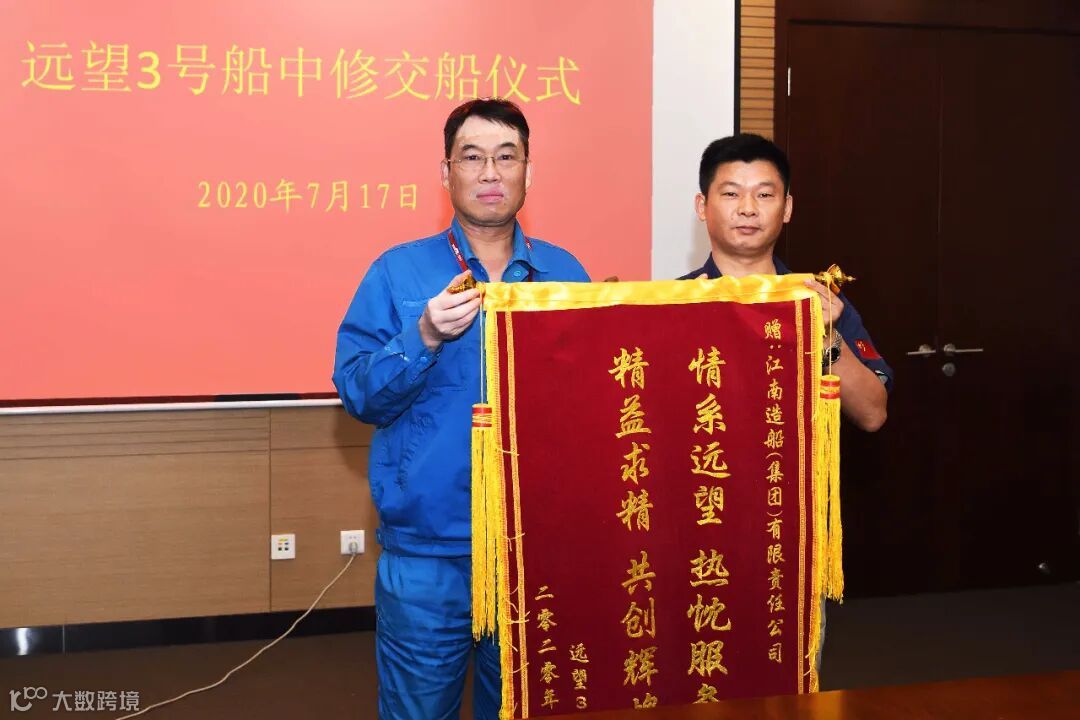 7月17日,江南造船、航天系统部、远望基地三方签字交船。7月18日上午,“远望3”号航天远洋测量船,在中国船舶集团旗下江南造船完成50天的中修改造工程后,以全新姿态驶离码头。公司副总经理张俭及各相关部门负责人为该船送行,公司资深专家张申宁及32名工程人员将随船试验试航完成后,保驾至江阴基地。