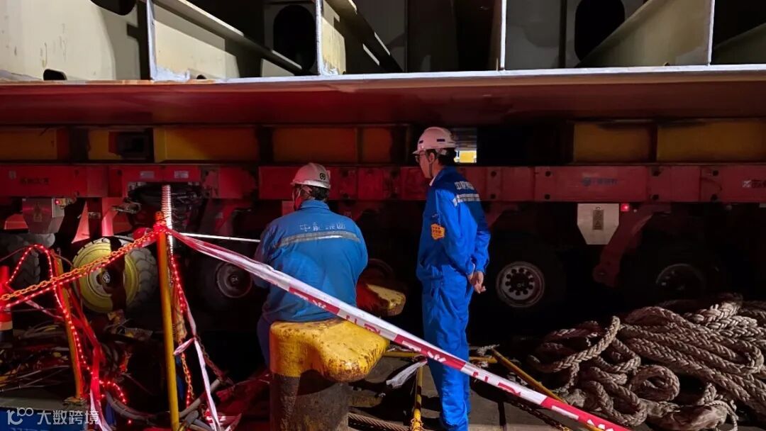 整个滚装过程离不开涨潮配合,这就意味着装船时机转瞬即逝。在工作人员充分准备下,9月21日上午9:03,首只环段开始装船,9:50该环段全部上驳船,10:59环段落墩完成,第一只环段滚装完成!总结首个环段滚装经验的基础上,后续环段的滚装逐渐提速,22日11:20第二只完成,23日12:30第三只完成,到23日晚23:59,团队完成了最后一只环段的滚装。