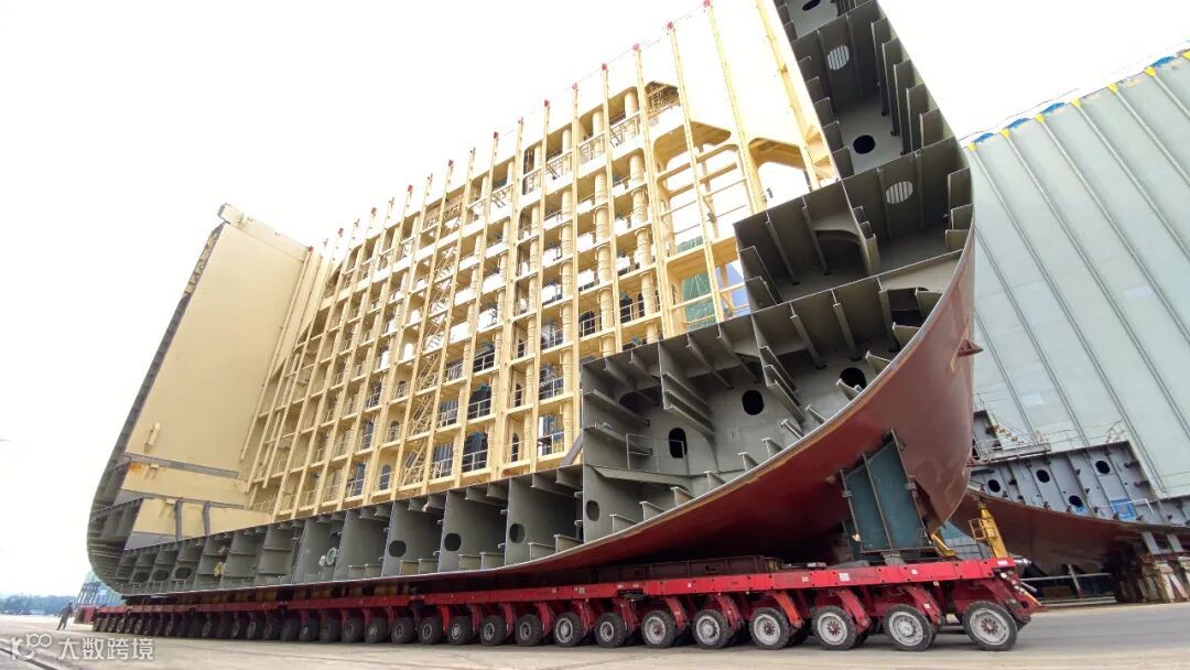 据悉,江南造船环段异地建造及驳运技术,在国际上处于领先水平,公司成立了以王国军领衔的大件驳运工作室开展相关研究。本次4只巨型环段同时滚装驳运属国内首例,且用时不超70小时,标志着公司巨型总段滚装驳运的技术迈上新台阶、总装化造船取得新突破,也将有效解决公司后续生产的负荷压力,为15000TEU系列船的按期交付奠定坚实基础。