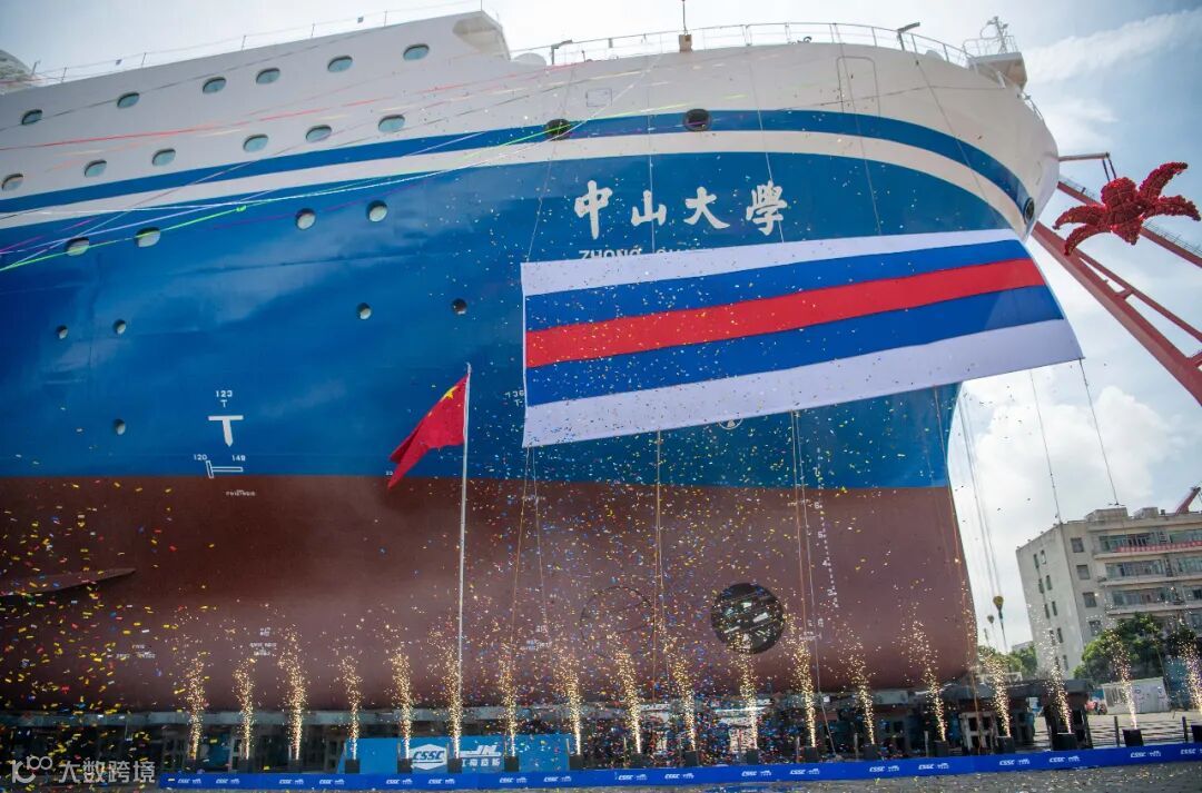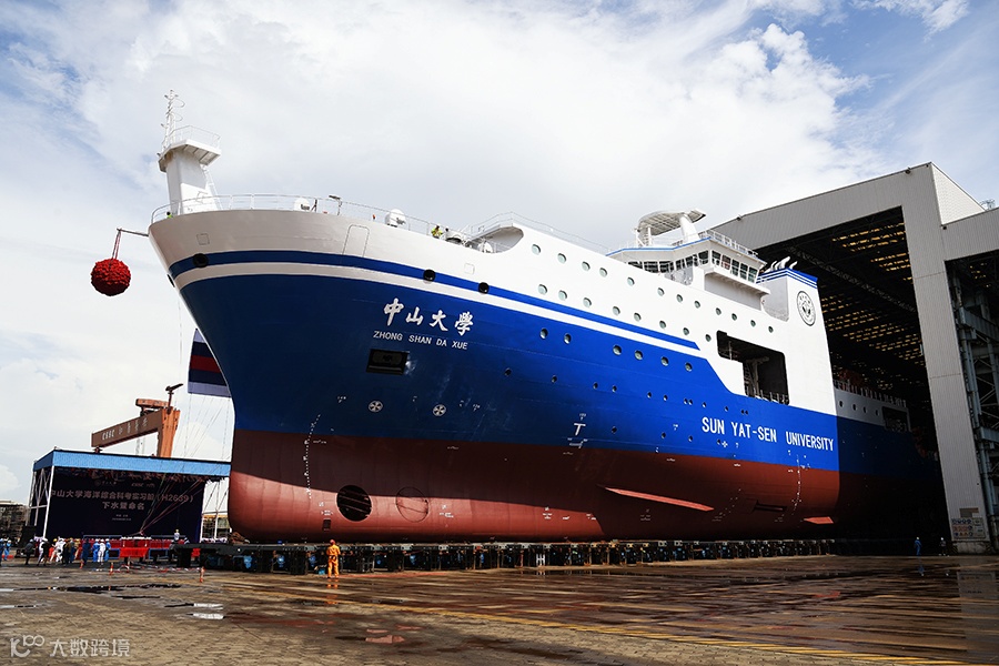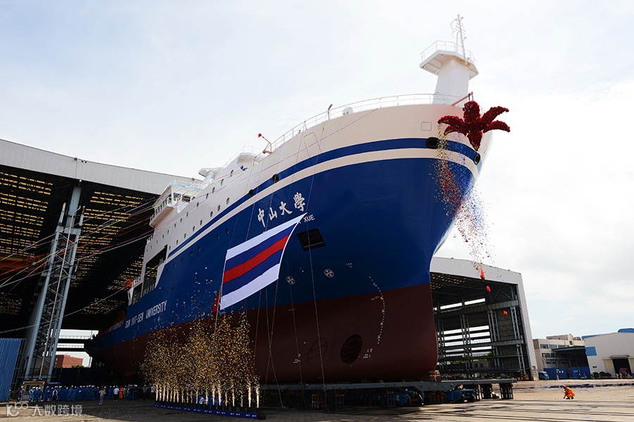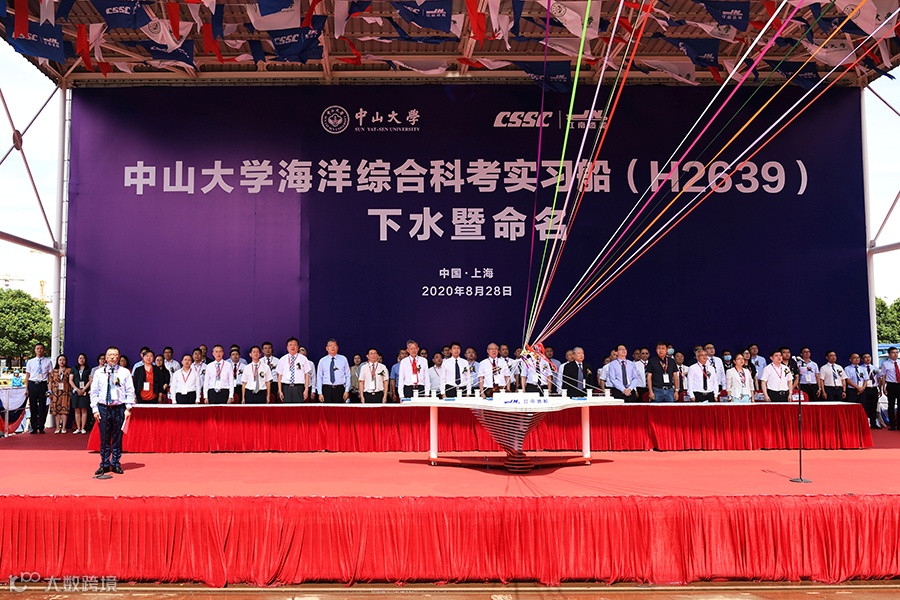 8月28日,国内最大海洋综合科考实习船“中山大学”号在中国船舶集团旗下江南造船下水并命名。中国科学院院士徐冠华,中山大学党委书记陈春声,中山大学校长、中国科学院院士罗俊,中国科学院院士、南方海洋科学与工程广东省实验室(珠海)主任陈大可,中国科学院院士、南方海洋科学与工程广东省实验室(珠海)副主任张培震,教育部发展规划司司长刘昌亚,中山大学常务副校长孙冬柏,中国船舶集团有限公司副总经理杜刚,江南造船党委书记、董事长林鸥,总经理黄文飞以及来自自然资源部、广东省科学技术厅、国家自然科学基金委员会、广州海关、中国船舶集团第七〇八研究所、中国船级社、中国科学院、上海交通大学、厦门大学等单位的嘉宾出席下水、命名仪式。中山大学校长、中国科学院院士罗俊为该船命名。