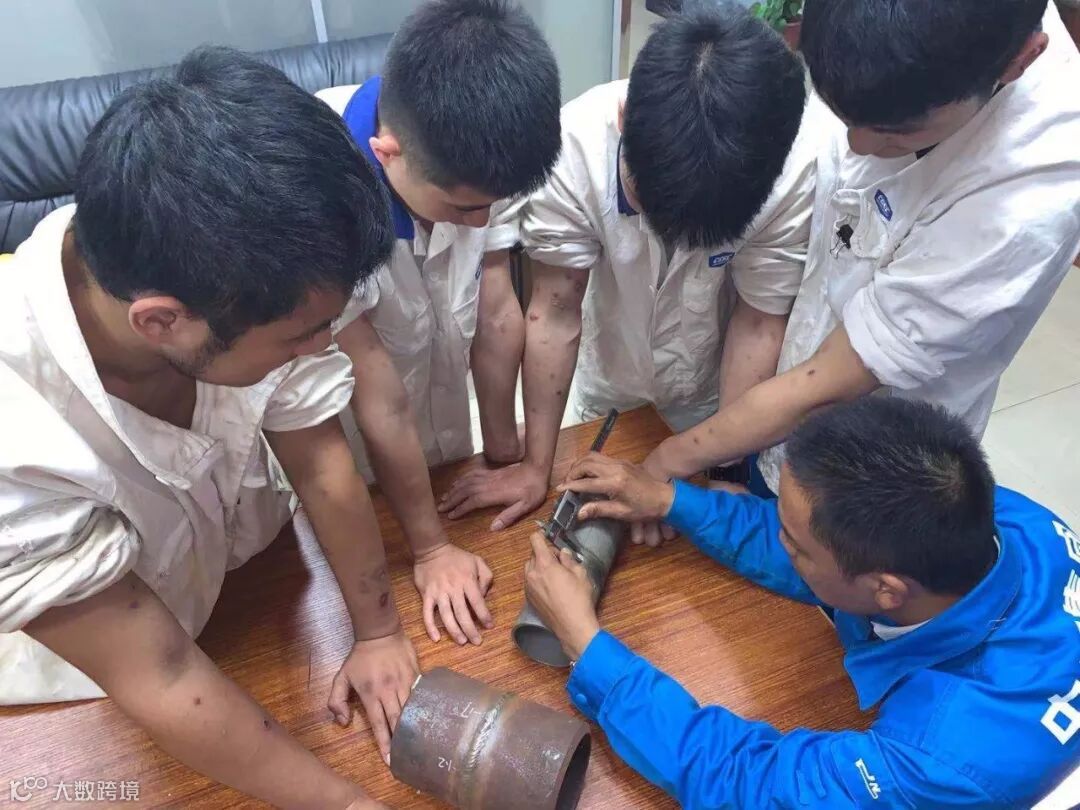 实操则有些残酷。“烧电焊的时候为了保证焊缝的质量,有时候1500多度的铁水烫在胳膊上,胳膊都不能动的,撕心的疼也得忍着,要等它自己灭了为止。”在本帽的再三请求下,李硕露出了胳膊。胳膊上还有蚕豆大小的水泡,就是前几天比赛时留下的印记,再加上以前留下的疤痕,整个胳膊没有几块好的皮肤。