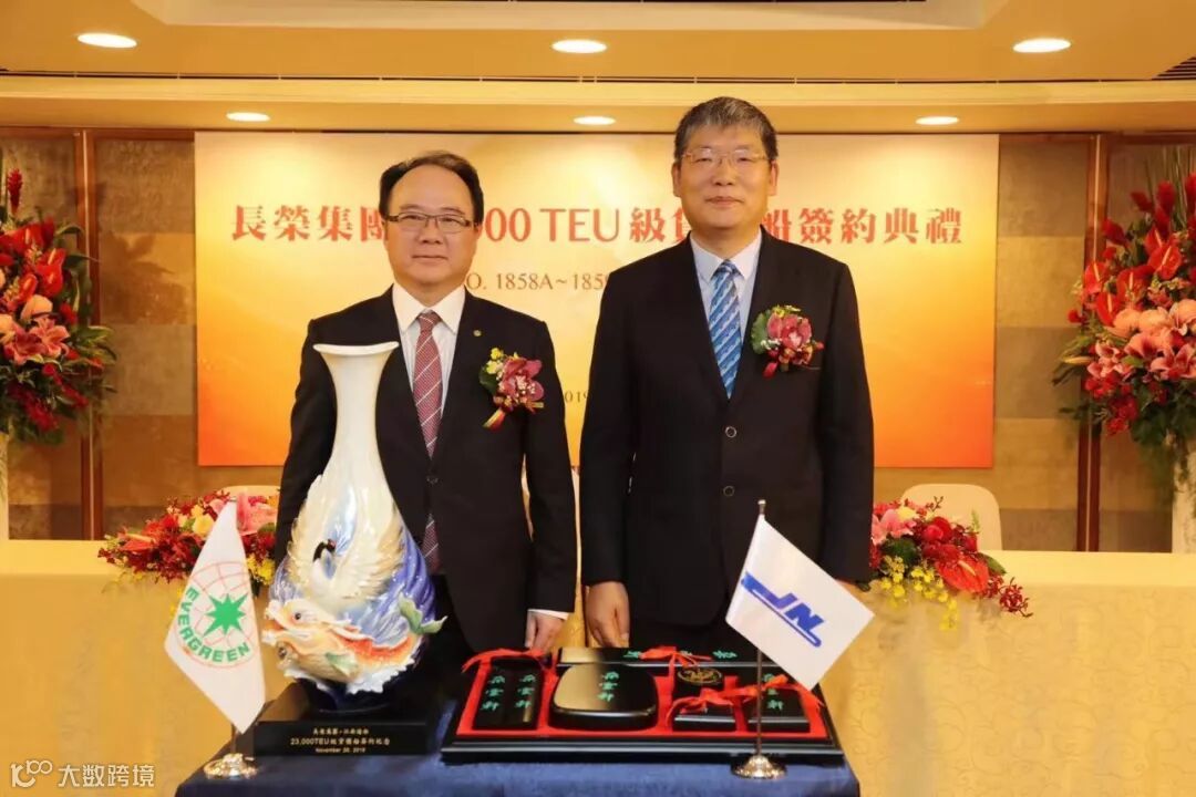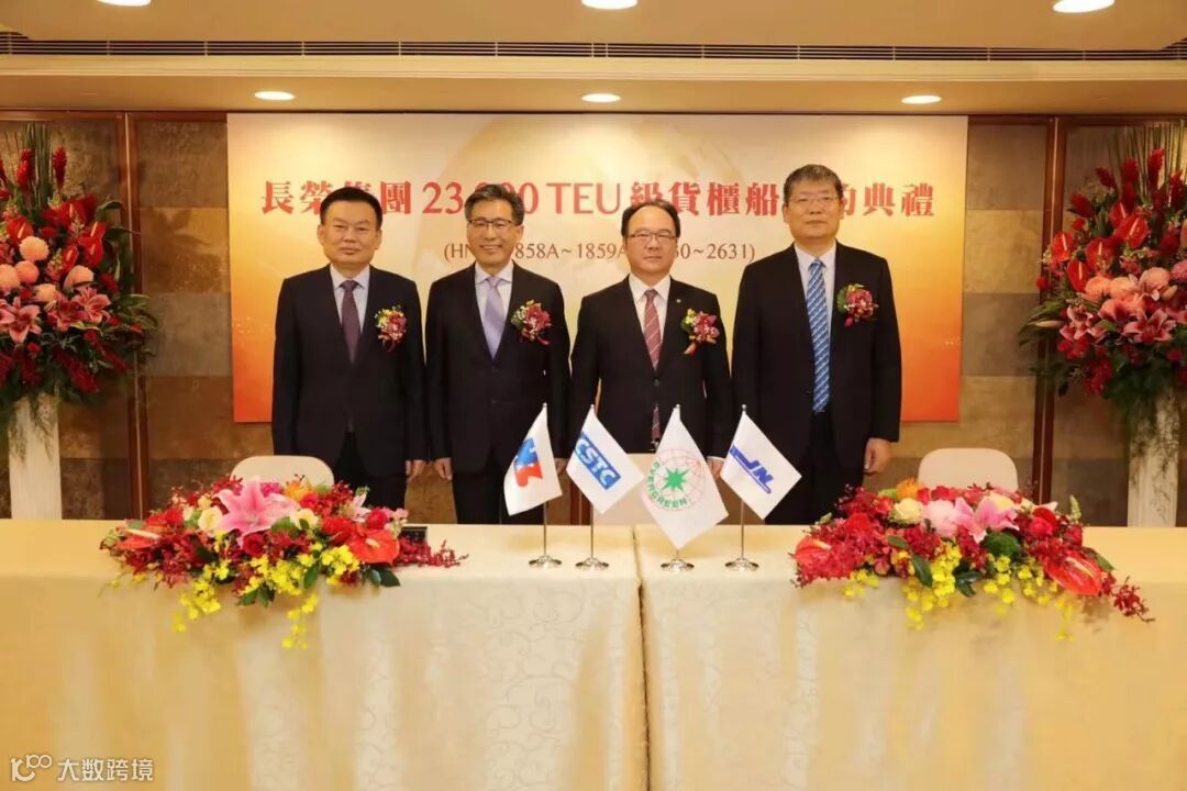 导读:2019年11月26日,江南造船(集团)有限责任公司在台湾台北市长荣桂冠酒店与长荣海运股份有限公司签订了2艘23000TEU超大型集装箱船建造合同。