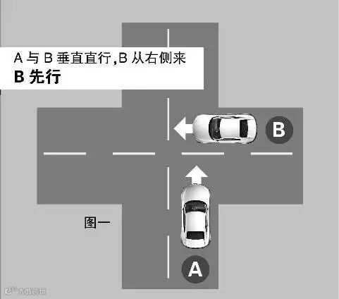 这条规则是由2004年之前实行的《中华人民共和国道路交通管理条例》其中一条规定演变而来——“让右边没有来车的车先行”。由于之前的说法拗口又难理解,所以改成了现在的“让右侧车先行”。之所以“让右侧车先行”,是基于合理利用资源,将危险降到最低的原则考虑的,即两车谁先到达交叉点(危险点),谁就应该先驶离危险点(如图一)。车头咬着车尾走既不交叉,又很科学。