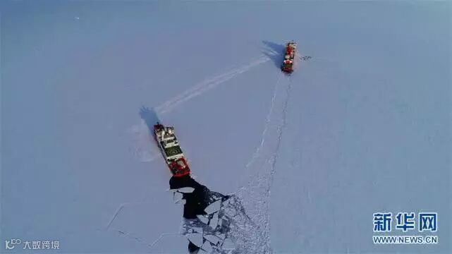 “吉林一号”卫星拍摄的“雪龙兄弟”破冰场景