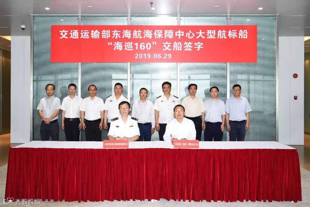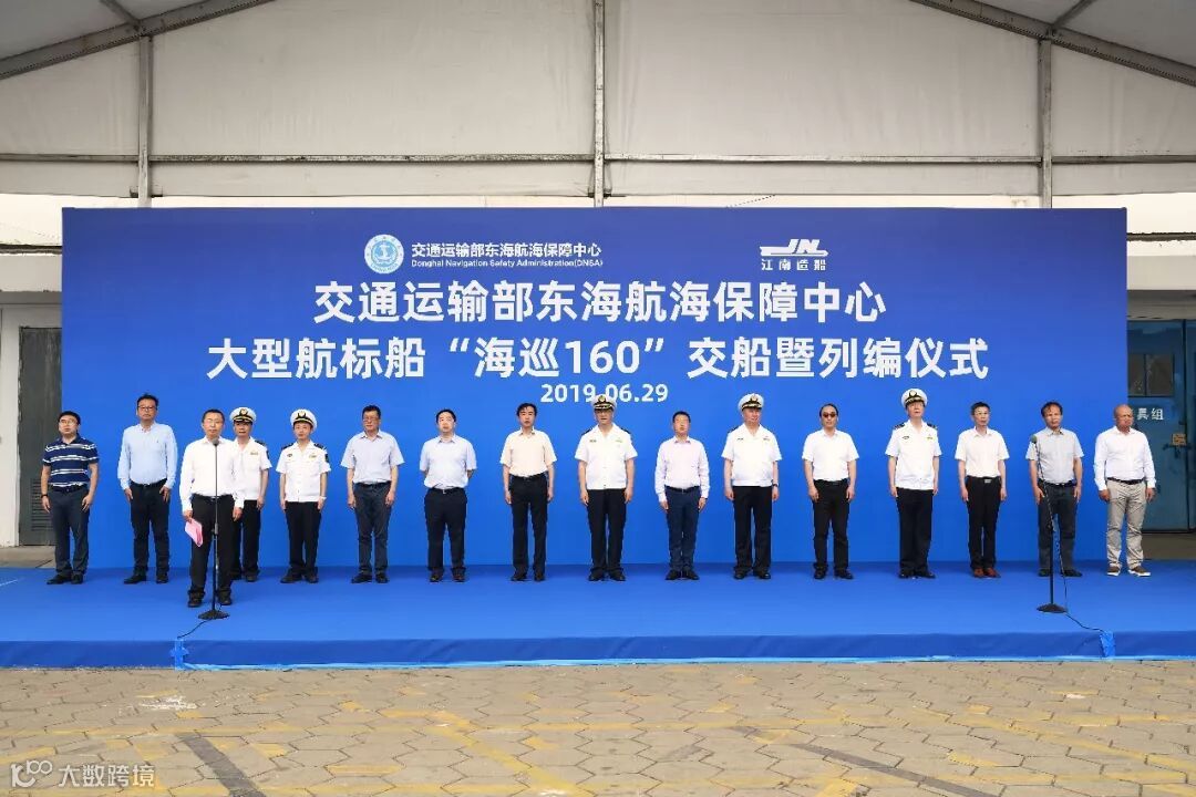 6月29日,由中国船舶工业集团有限公司所属江南造船(集团)有限责任公司为东海航海保障中心建造的大型航标船“海巡160”船正式交付。交通运输部东海航海保障中心党委书记许骐,上海海事局副局长汪志军,中国船级社上海分社副总经理唐敏杰,江南造船总经理、党委副书记黄文飞,以及来自中船集团第708研究所、中船重工第711研究所、上海双希海事、海兰信数据科技有限公司、中交航信科技有限公司等单位嘉宾等出席仪式。中国船级社向船东方颁发CCS入级证书。