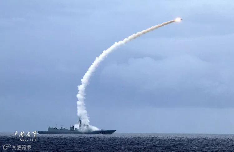 ▲海口舰发射对空导弹拦截目标。李章龙 摄
