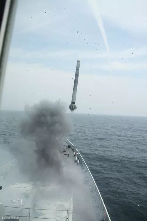 ▲海口舰舰空导弹出鞘瞬间。曾行贱 摄