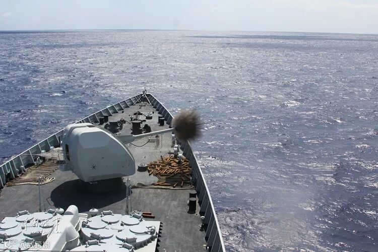 ▲海口舰主炮对海射击。李昌寰 摄