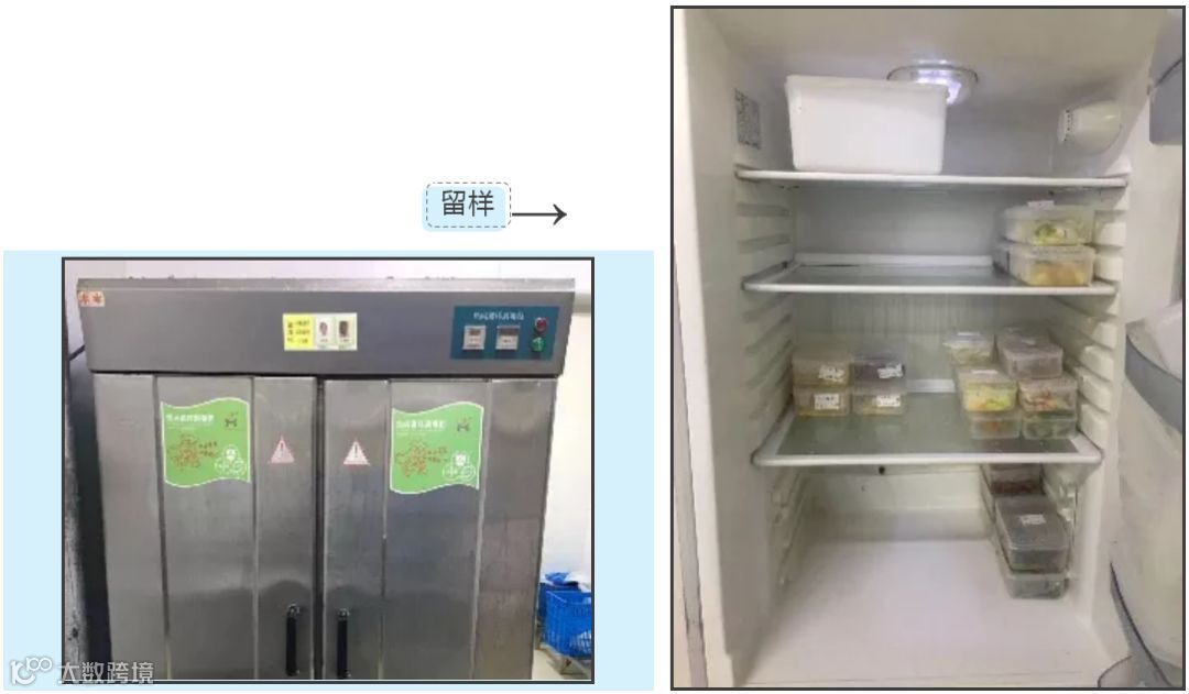 中央厨房统一加工处理原材料, 加工过程中严格按照生产工艺的先后顺序,原料处理、半成品处理和加工、容器的清洗、消毒、检验等工序分开设置,杜绝前后工序交叉污染。食品接触的器具专框专用,生熟分开。并对每餐次膳食实施留样管理制度。