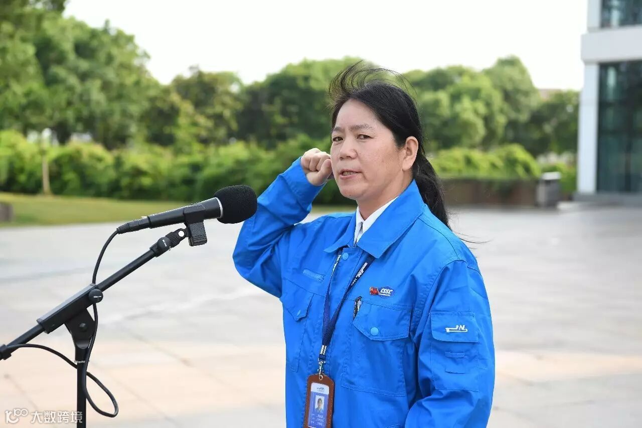 全国五一劳动奖章获奖者朱瑞霞领誓,全场人员庄重宣誓: