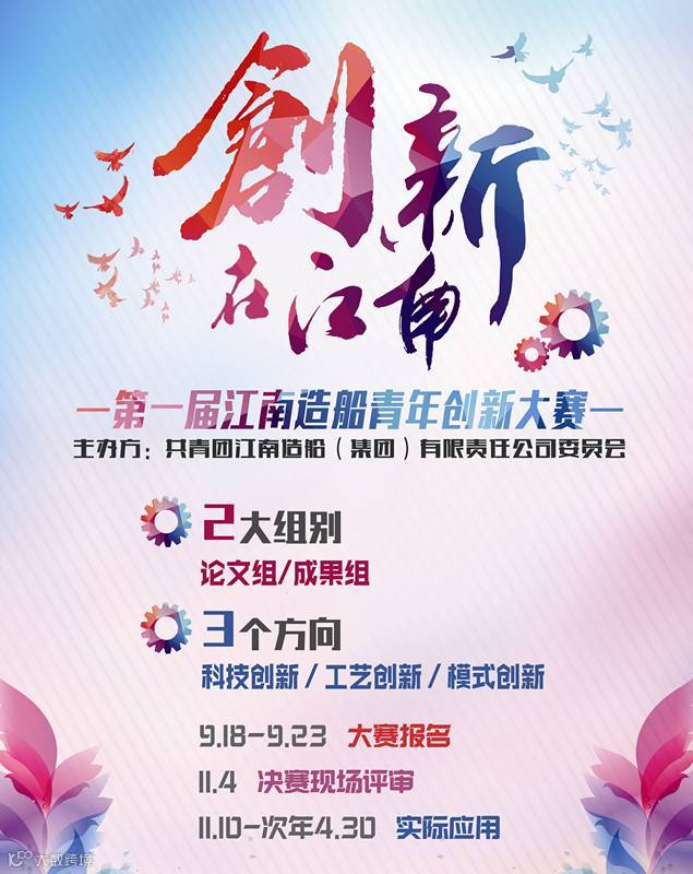 根据共青团上海市经济和信息化工作委员会的“关于开展2016年上海市产业和信息化职业青年创新大赛的通知”,为贯彻落实《上海百万青年成长计划实施方案(2014-2018)》(沪团委办〔2014〕34号)精神,按照上海市加快建设具有全球影响力的科技创新中心对青年创新人才提出的要求,结合江南造船职业青年特色,第一届江南造船青年创新大赛与9月10日正式启动,该活动由江南造船团委主办,得到了公司领导的高度重视和党群工作部等部门鼎力支持。