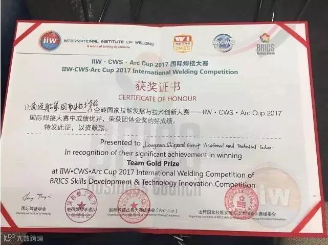 2016年6月,江南技校派出4名学生参加第四届国际“嘉克杯”国际焊接技能大赛。这是江南技校首次参加“嘉克杯”国际焊接技能大赛。其中安仁江和宋移山包揽了氩弧焊赛项的第一名和第二名,王帅和徐志猛取得了CO2气体保护焊赛项第二和第三名的成绩。