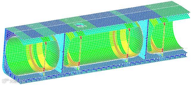 液货系统方面,该型船配备有层叠式两级冷却方式再液化装置,其中包括两台制冷压缩机和三台货物压缩机。双级制冷有效降低了货物液化能耗,同时压缩机属于高精密的运转设备,对支撑刚度和安装精度地要求远较其它设备高,根据之前的建造经验,振动问题是影响压缩机设备能否运转正常的关键因素,江南立足防患于未然,设计阶段对设备的基座及相邻船体结构进行详细的分析,通过对局部振动的分析优化,使得设备及基座与船体局部结构的振动频率完全错开,保证了设备的安全运转。