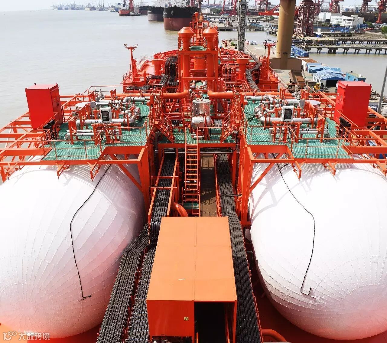 江南还自主研发了双壁高压供气管,填补了国内空白。主甲板上两个总舱容达2300m³的燃料罐可以满足使用LNG燃料的需求,同时具有相当的灵活度,可以在主机使用燃油时用来装载货物。