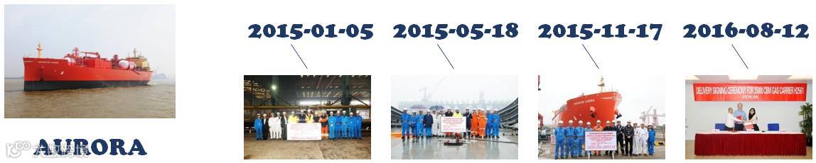 首制船:NAVIGATOR AURORA于2015年1月5日开工,2016年8月12日交船。