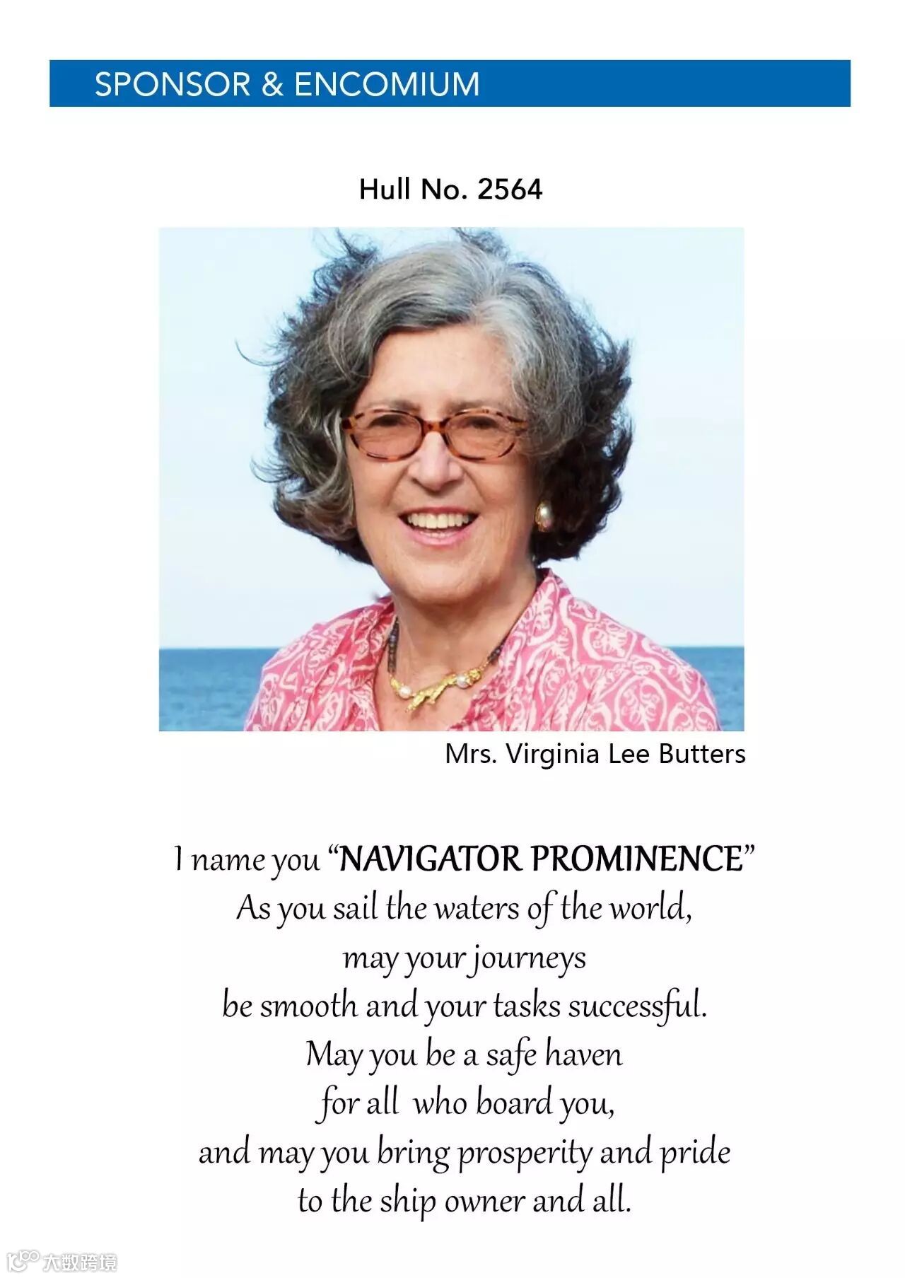 2017年5月19日,江南造船举行H2564船命名仪式,该船是江南造为Navigator Gas建造的37,500m³乙烯运输船系列的最后一艘,Navigator Gas董事长、CEO、总裁Mr. David Butters,中船集团副总经理陈琪及船东和船级社代表等贵宾出席命名仪式。Navigator Gas董事长夫人Mrs. Virginia Lee Butters将该船被命名为NAVIGATOR PROMINENCE。