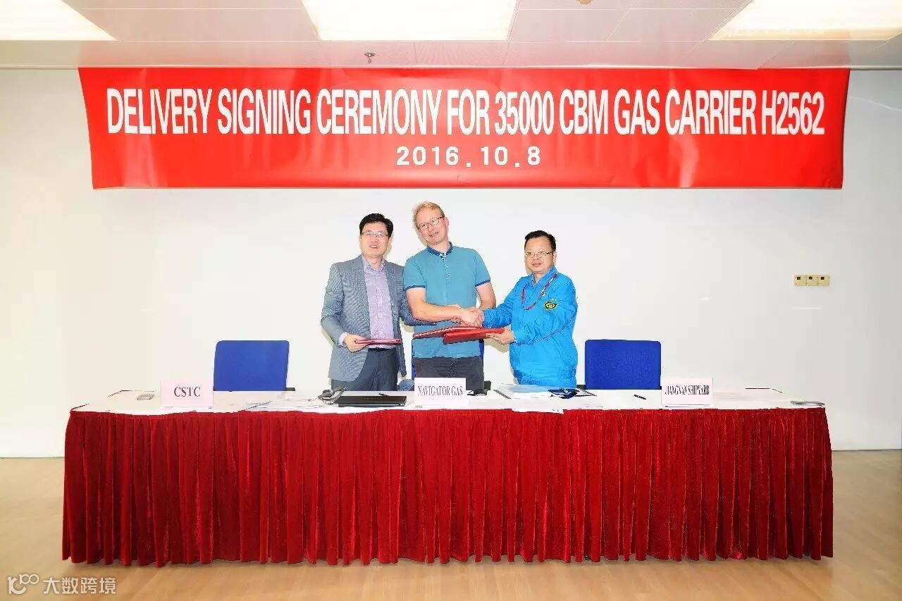 2016年10月8日,江南造船为Navigator Gas建造的第二艘37,500立方米乙烯运输船签字交船。Navigator Gas在江南造船共订造了4艘37,500立方米乙烯运输船,入级ABS。