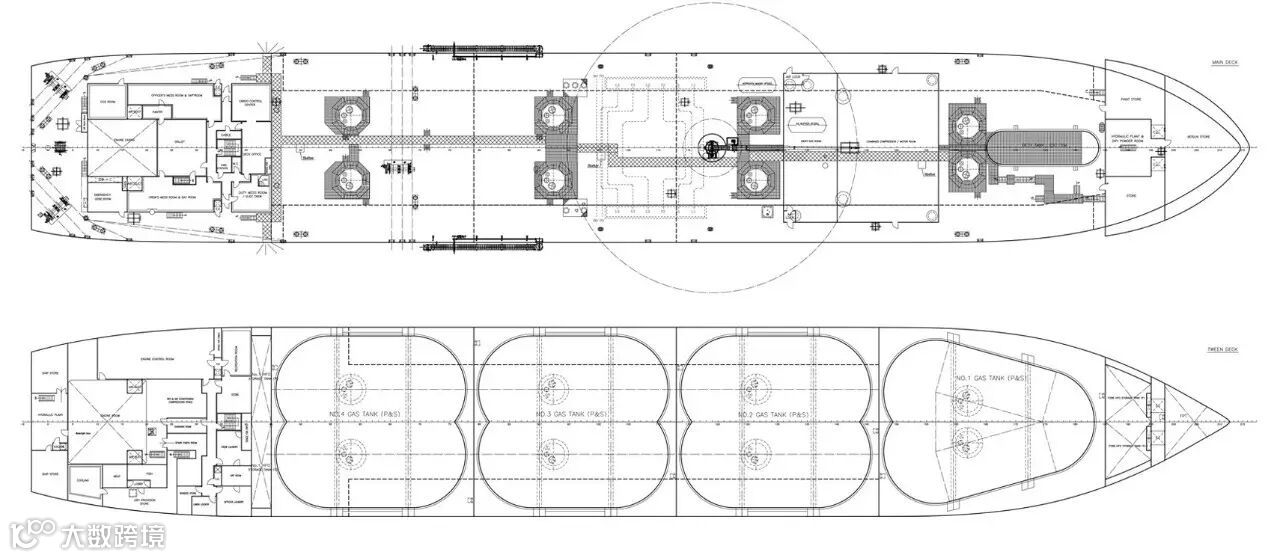 为更好地满足船东的使用要求,“Lusitano E”对主甲板上各类设施的布置、压载舱划分等多处进行了布置优化,使布局更加合理、紧凑。其中包括电机和压缩机室采用一体式设计、对压载舱进行了重新划分、采用无管弄设计等。