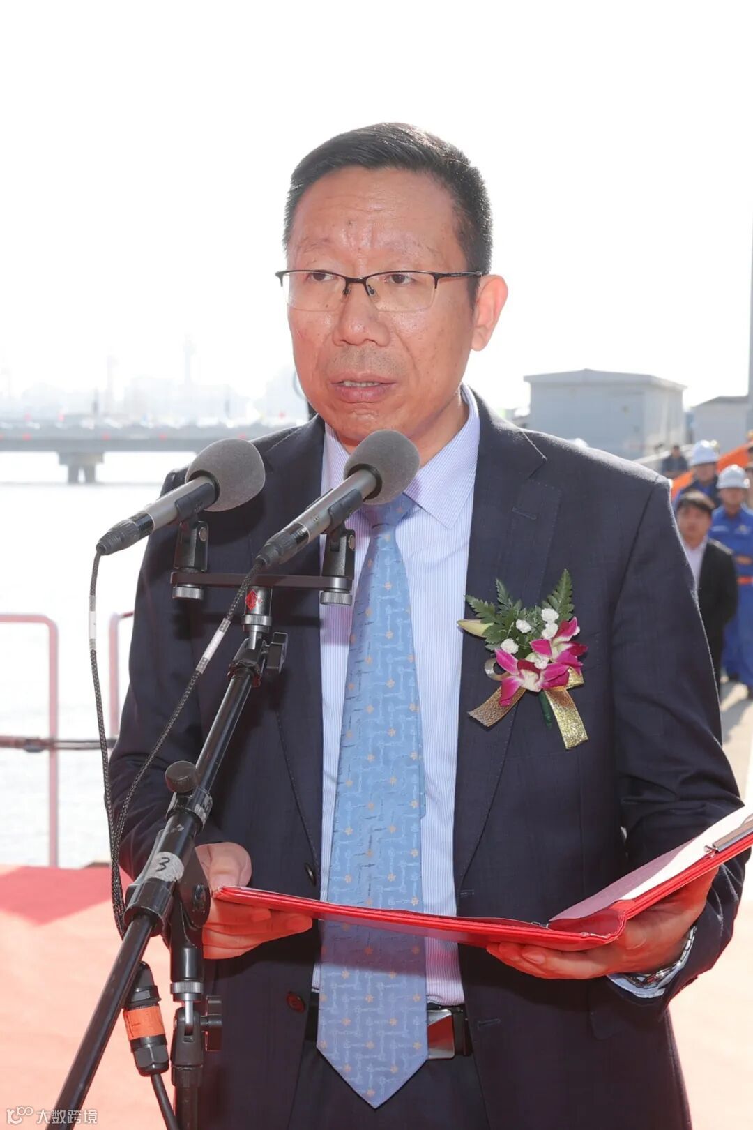 命名嘉宾夏文勤女士为新船命名砍缆,公司董事长陈建良向命名嘉宾赠送鲜花和纪念品。工业和信息化部装备二司船舶处处长刘啸波,上海市经济和信息化委员会重大装备处副处长杨政,中咨公司高技术业务部副主任戴洵,中化石油副总经理夏尚,中远海运能源独立董事李润生、副总经理张勇,上海LNG董事长丛剑、总经理林楠,新船船长库斯卡斯·亚历山大,宝武特冶董事长傅建国,中船集团科技信息部副主任邢宏岩,公司总经理翁红兵、总工程师宋炜、科技委主任金燕子,霍尼韦尔大中华区总裁余锋,以及产业链上下游、船级社、金融机构等各界嘉宾共计100余人出席本次命名交船仪式。