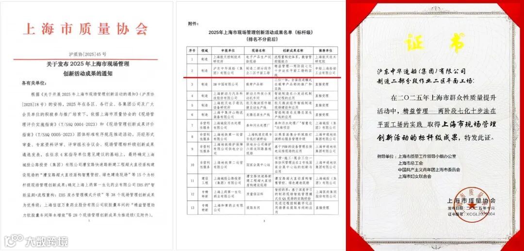 近日,公司制造二部“精益管理——两阶段七化十步法在平面工场的实践”项目,在2025年上海市群众性质量提升活动中,被评为“标杆级”现场管理创新成果。