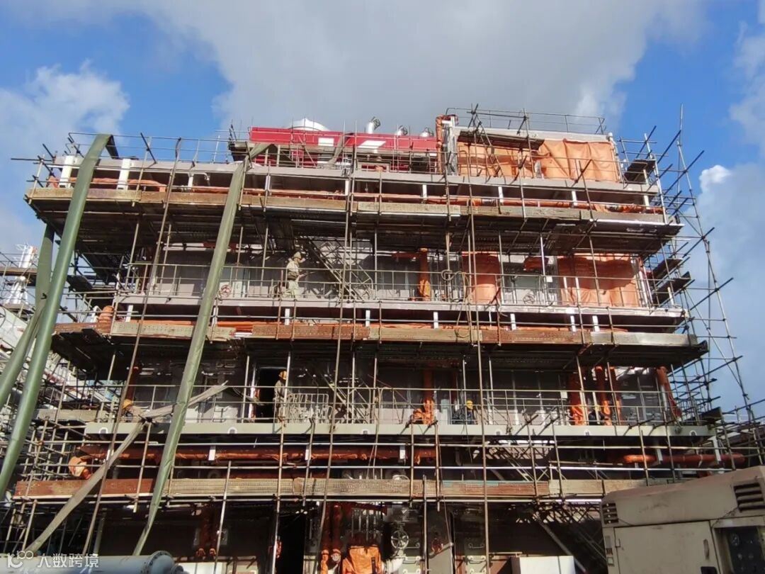 高温天气下,团队采用“早晚突击”模式,晨光熹微时抢抓施工黄金窗口,暮色四合中延续攻坚态势,通过生管部的统筹调度,搭载与总装环节紧密咬合,涂装无缝衔接,为上建机舱棚总段涂装按下“倍速键”,首次实现面漆前吊装,总段完整性再上新台阶。