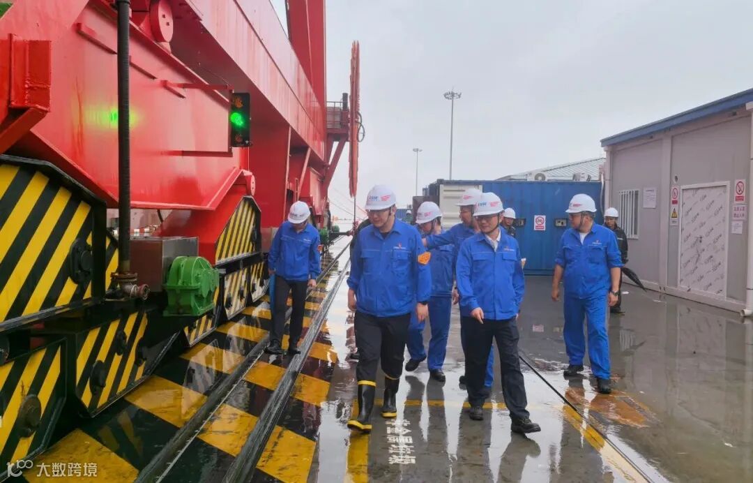 30日夜间,受风暴潮与海啸波叠加影响,码头岸线水位明显增高。翁红兵、郑豪、张秀峰、蒋凯等公司领导在数字指挥中心时刻关注实时气象、潮位动态,结合自然资源部海啸预警与上海市气象预警,实时指挥各部门做好单船应急响应和拖轮顶靠,开展全覆盖式隐患排查,并分组到现场检查。