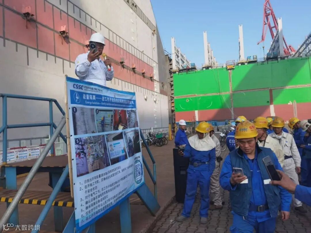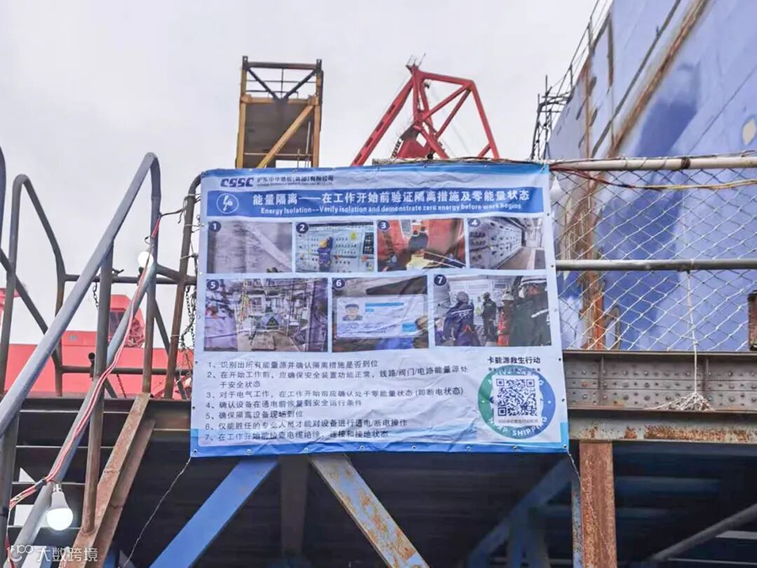 各部门员工积极参与,在分段制造区、船坞搭载区、码头舾装区张贴“能量隔离”主题海报、安全横幅,营造浓厚的安全氛围,通过扫描二维码深入学习“能量隔离”要点与注意事项,进一步巩固安全知识,明确提升安全操作与应急能力。安保部联合船东和各个部门,对生产现场的电箱、焊机、电动工具等进行专项检查,进一步提升现场用电安全。