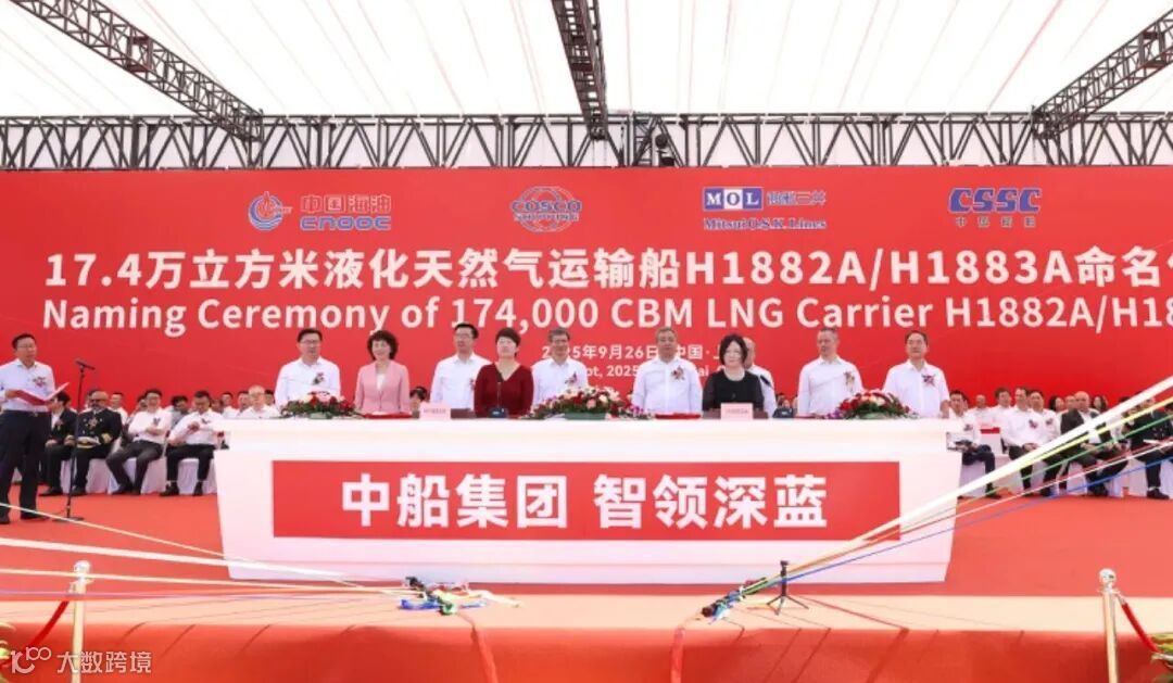 9月26日,公司为中国海油中长期FOB资源配套LNG运输船项目建造的17.4万立方米大型LNG运输船3号船“绿能星”轮、4号船“绿能月”轮在新厂区同日命名。两艘“姊妹船”计划于10月中下旬交付,均有望提前投入运营。