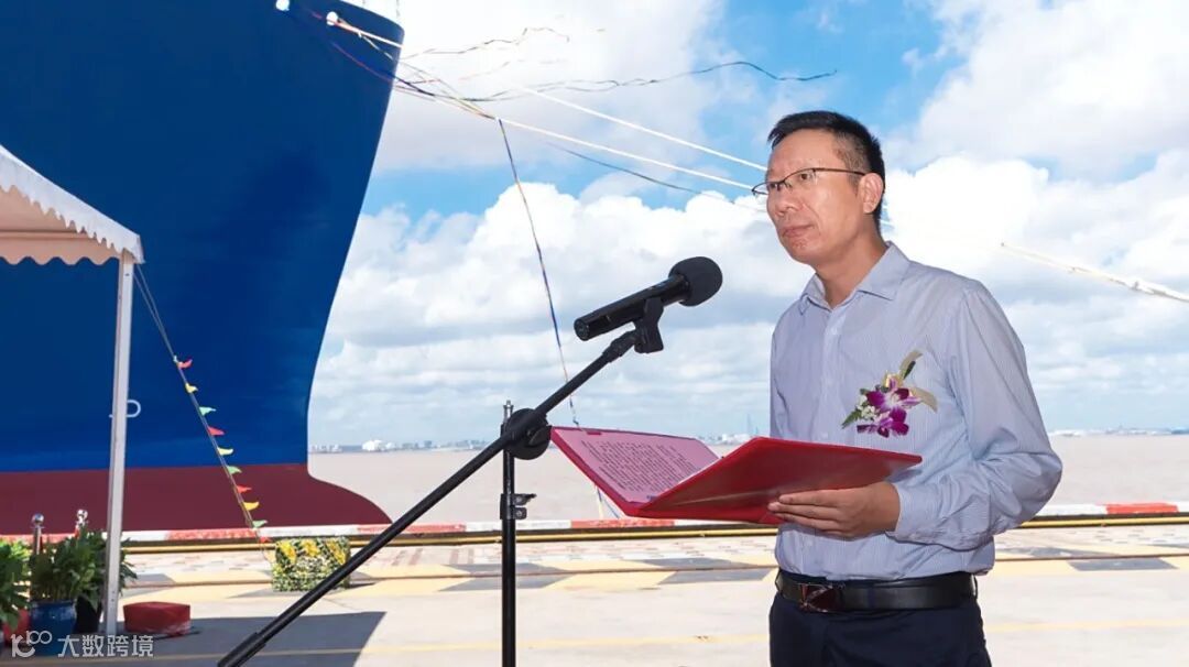 ▲招商轮船财务管理部总经理翟文峰女士为新船命名
