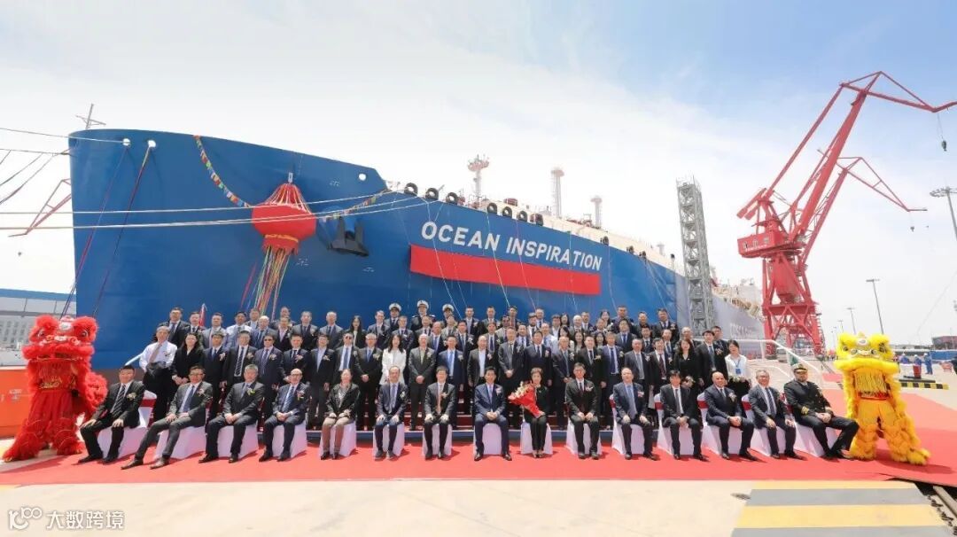 当天,17.4万方LNG运输船“远海奋进”号“Ocean Inspiration”在公司新厂区正式命名。